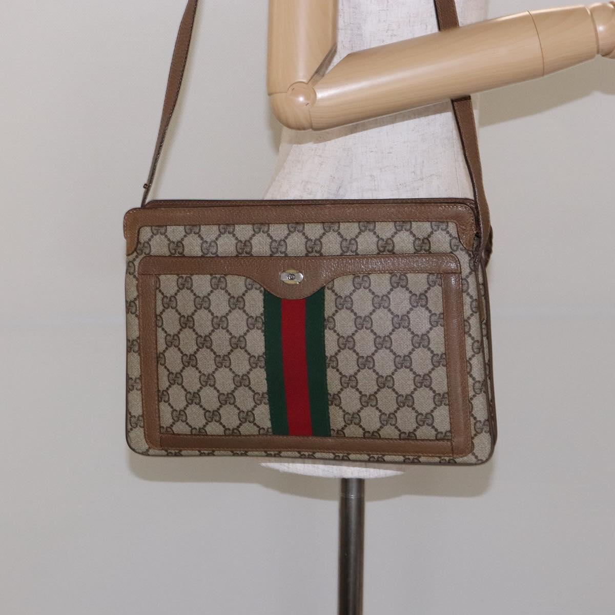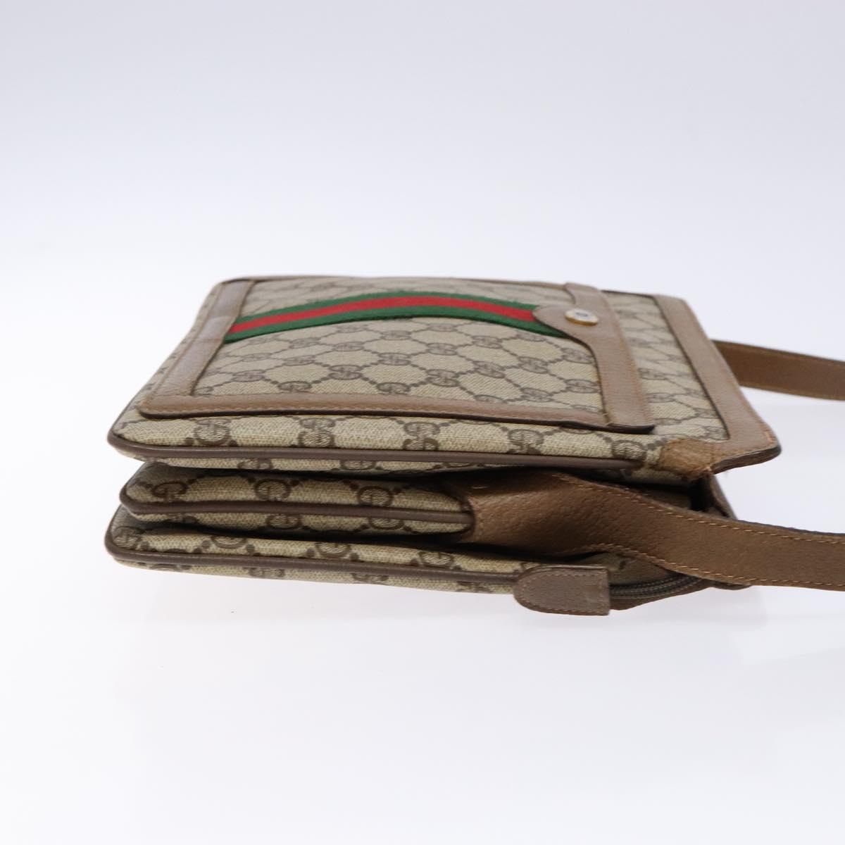 GUCCI GG Supreme Web Sherry Line Shoulder Bag PVC Beige Gold Red Auth ep10287