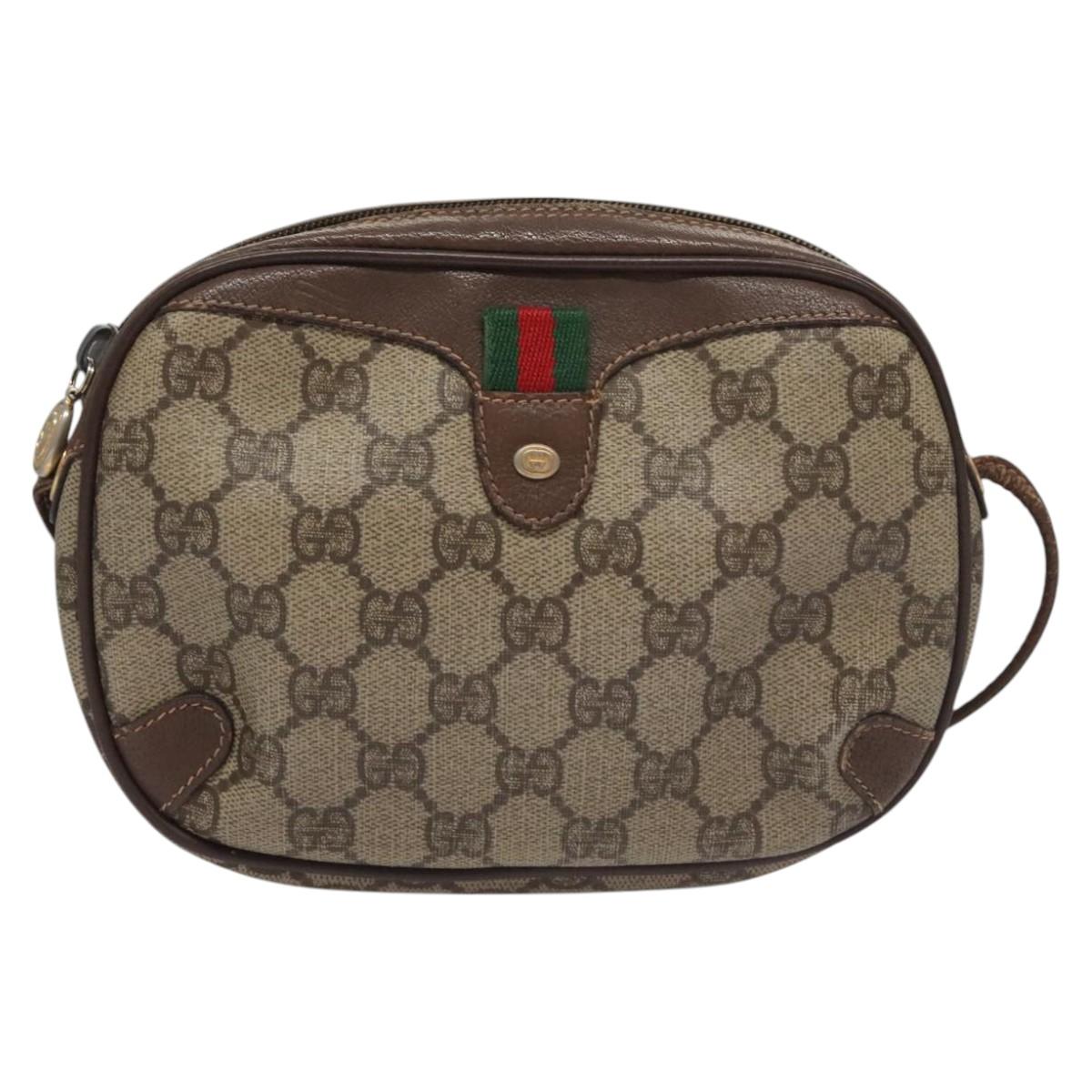 GUCCI GG Supreme Web Sherry Line Shoulder Bag PVC Red 156 02 066 Auth 115100