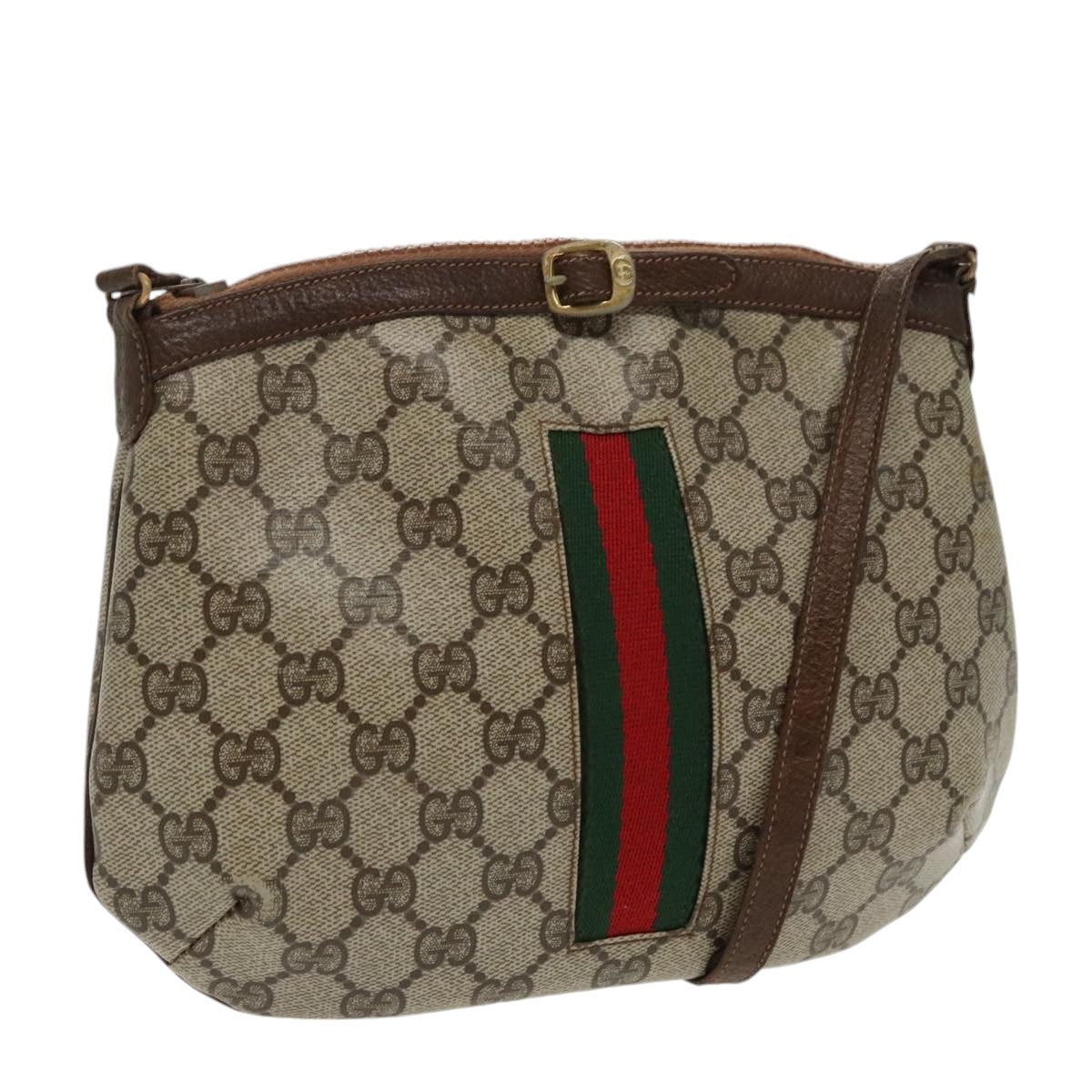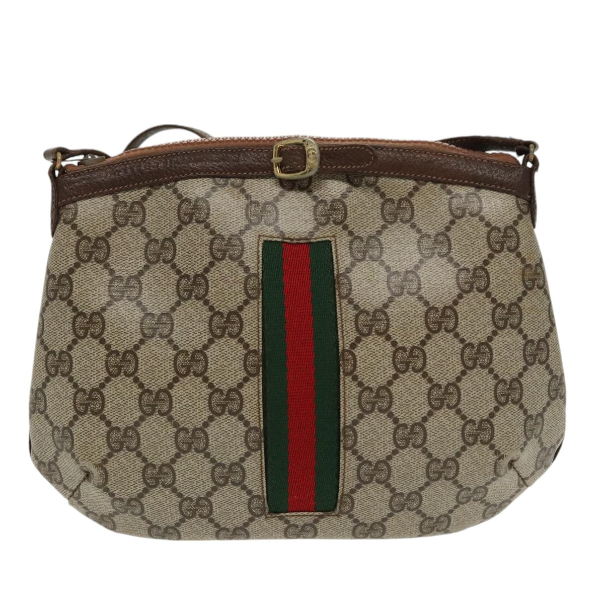 GUCCI GG Supreme Web Sherry Line Shoulder Bag PVC Beige Red Green Auth 99352