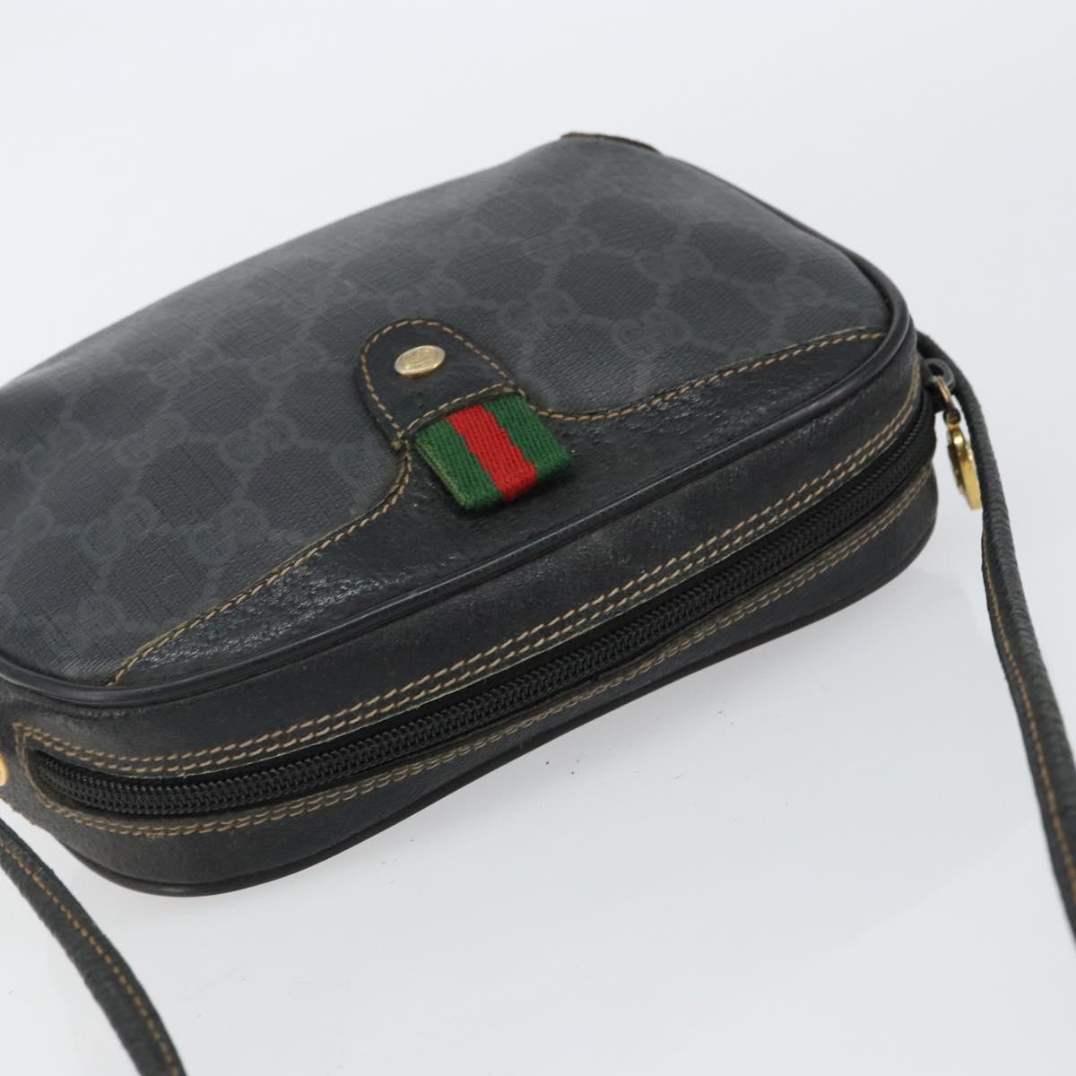 GUCCI GG Supreme Web Sherry Line Bag PVC Black Gold 156 02 066 Auth 143126