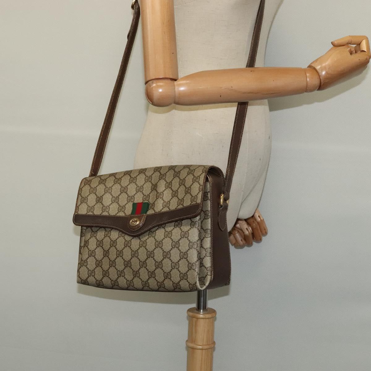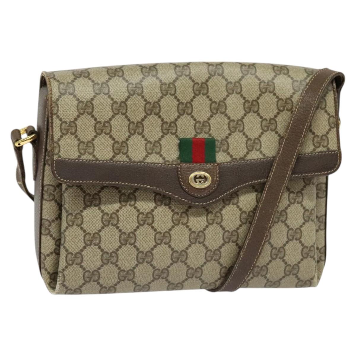 GUCCI GG Supreme Web Sherry Line Shoulder Bag PVC Beige 904 02 084 Auth BA1301