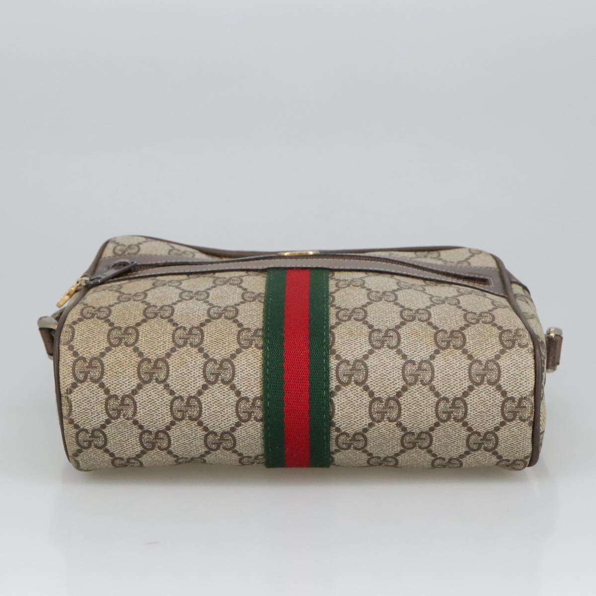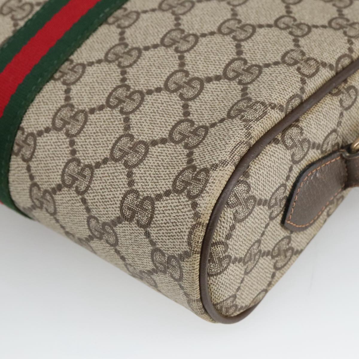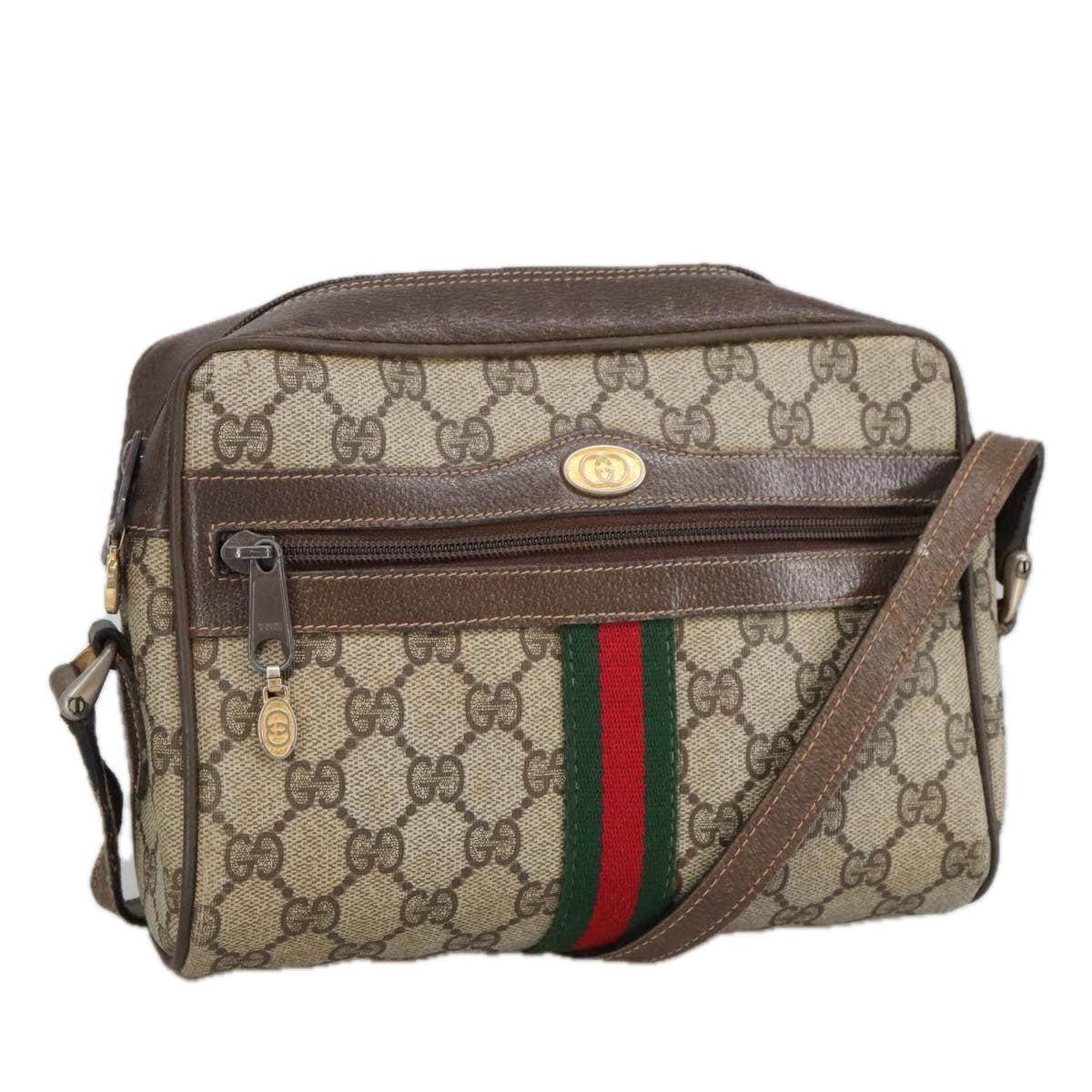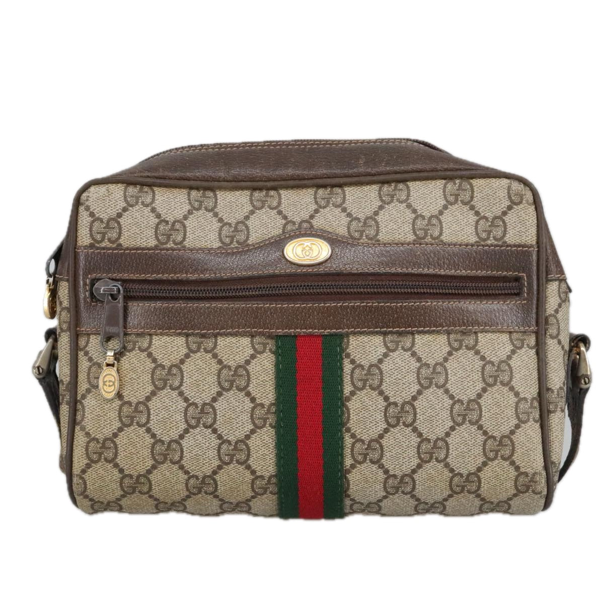 GUCCI GG Supreme Web Sherry Line Shoulder Bag PVC Beige Gold Auth ki5151
