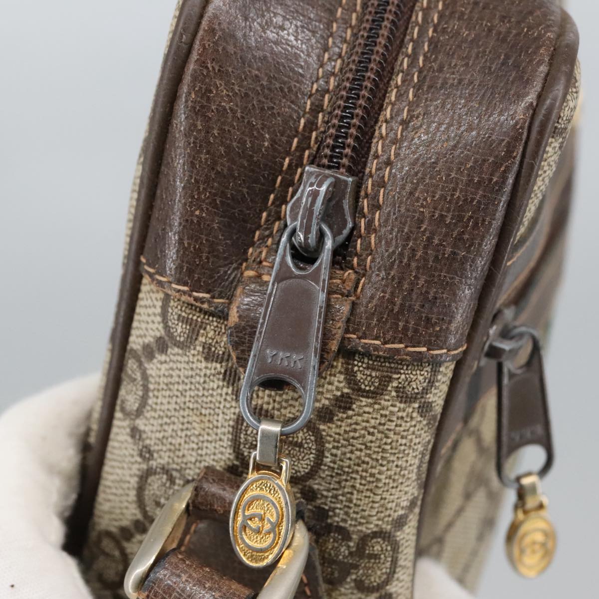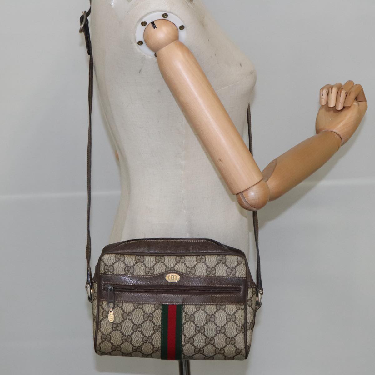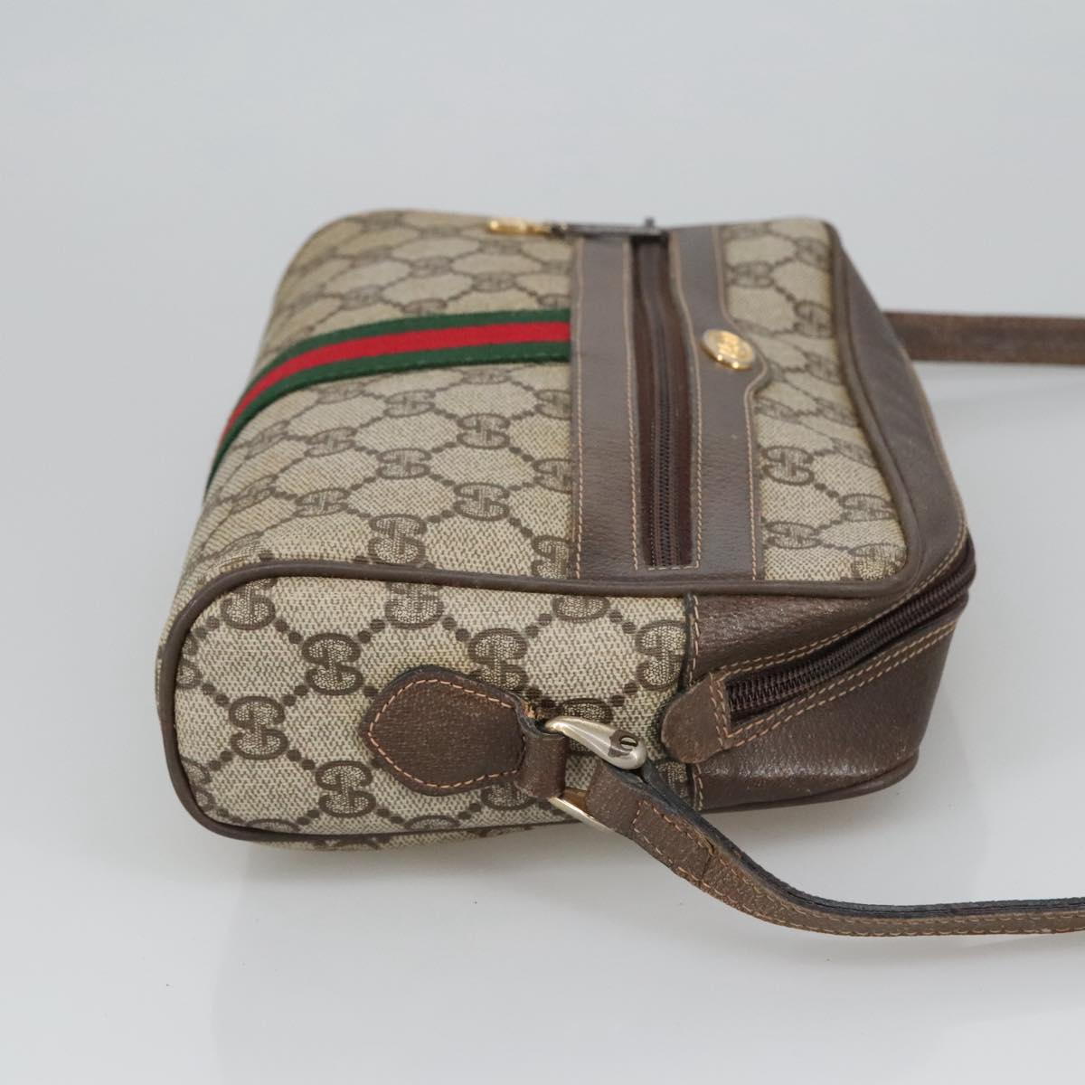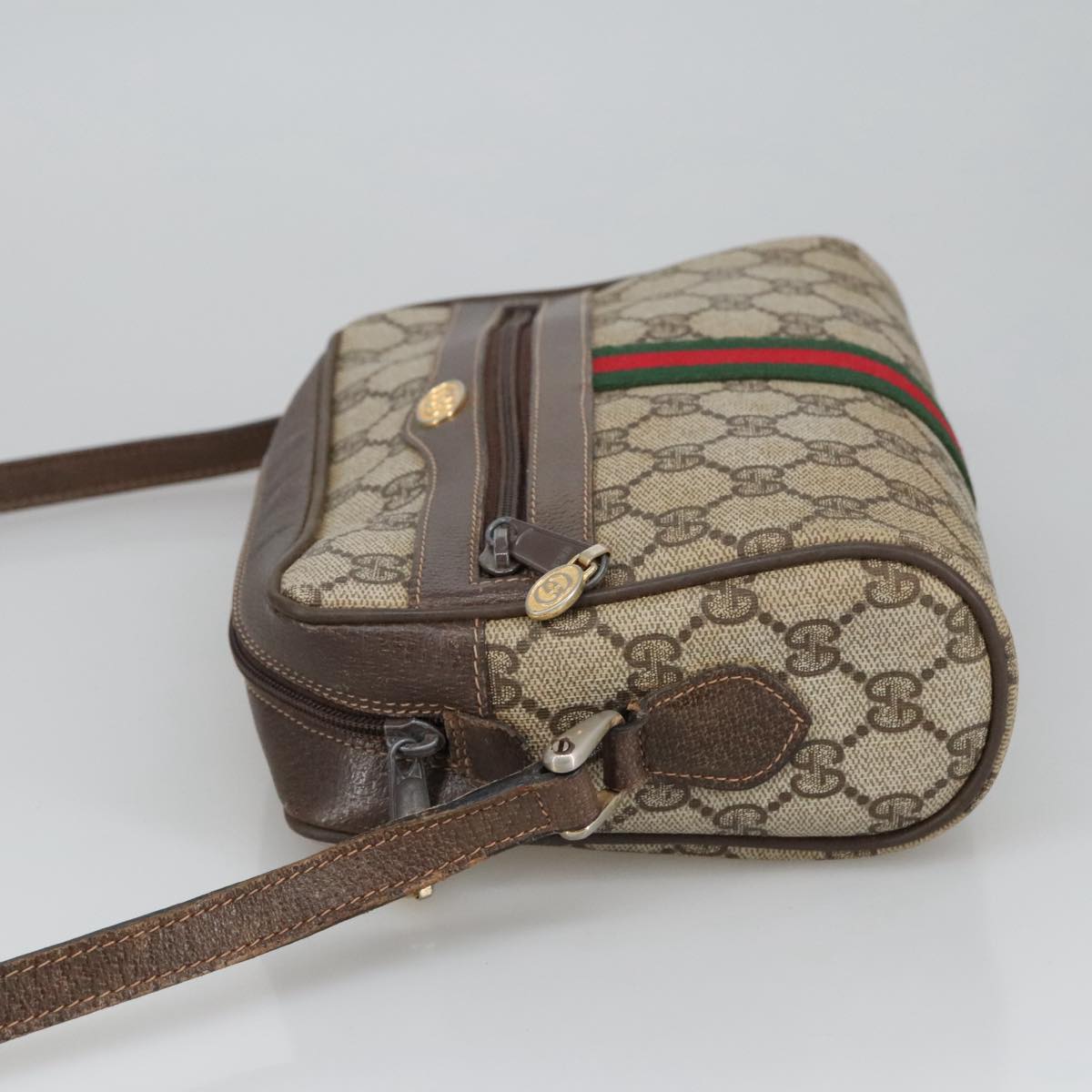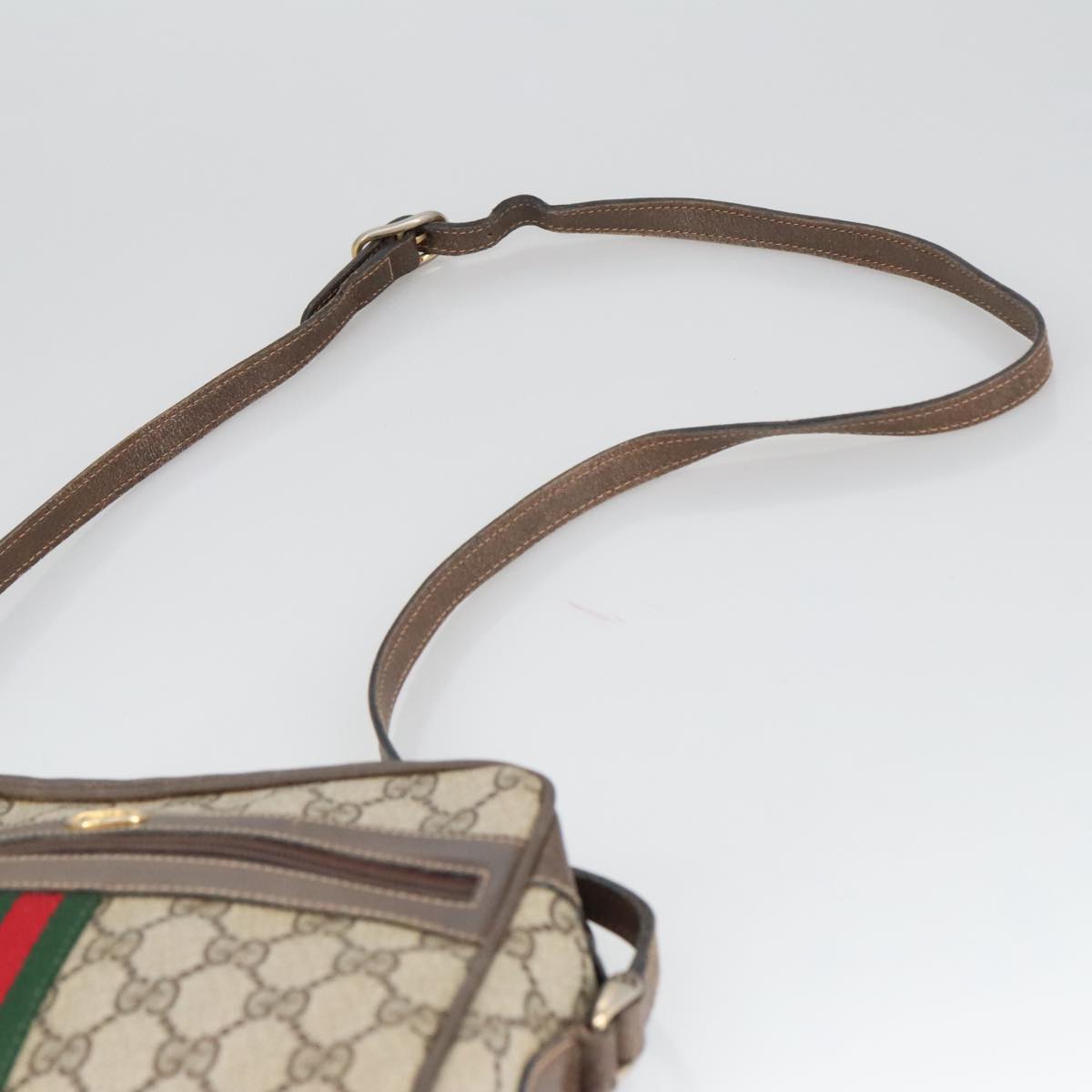 GUCCI GG Supreme Web Sherry Line Shoulder Bag PVC Beige Gold Auth ki5151