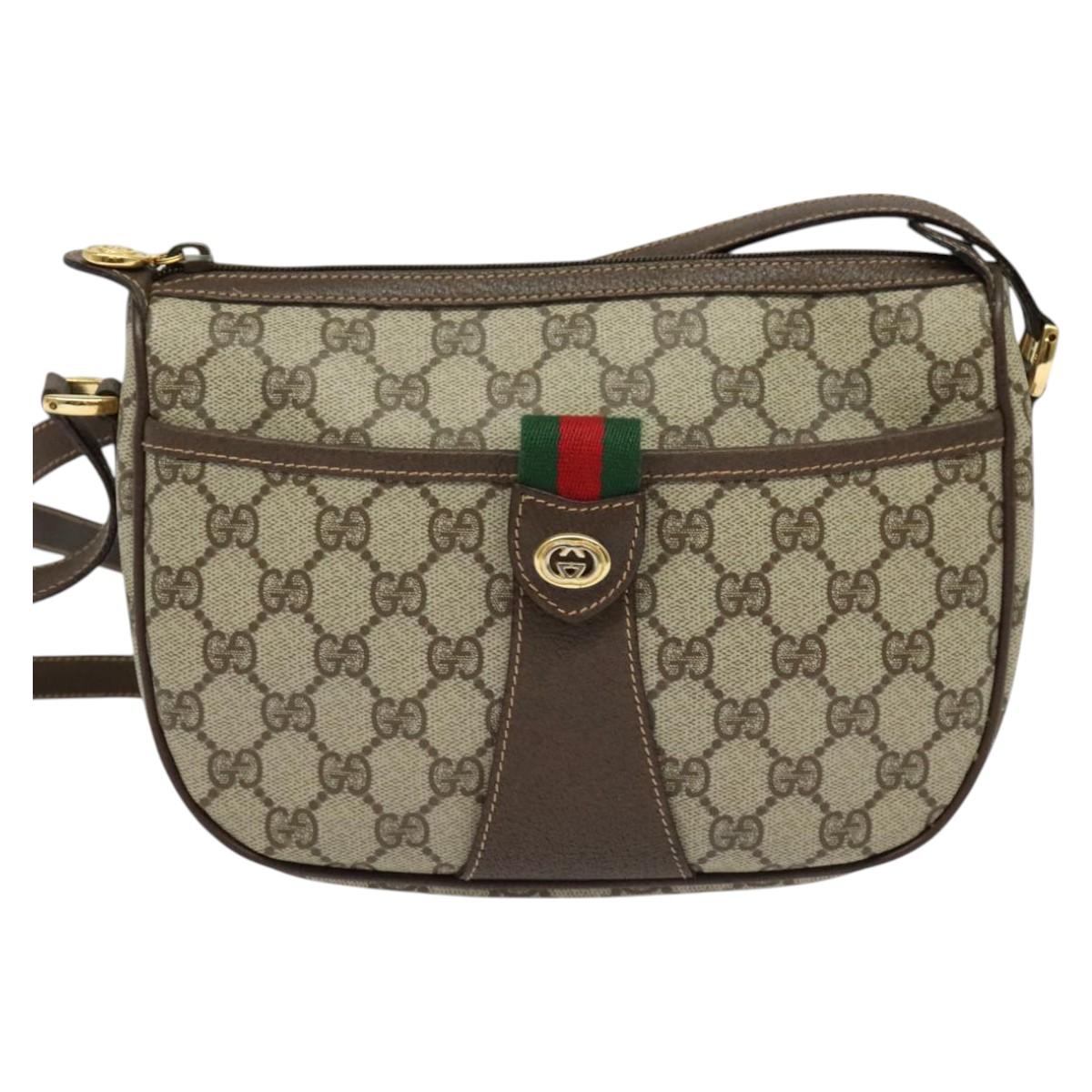 GUCCI GG Supreme Web Sherry Line Bag PVC Brown Gold 89 02 032 Auth 122664