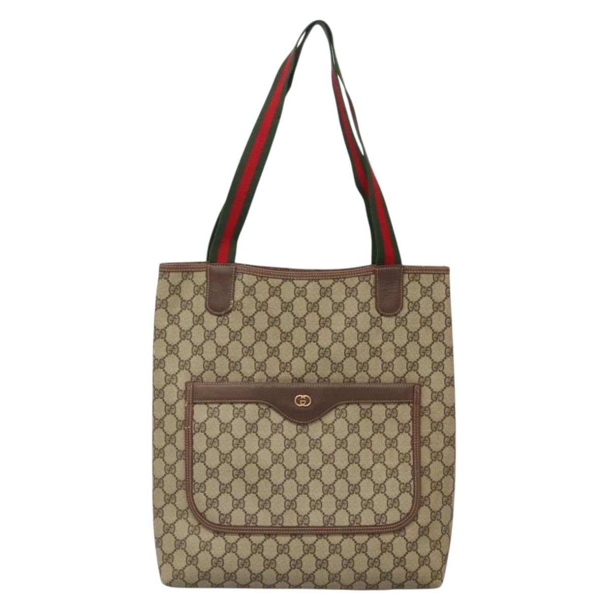 GUCCI GG Supreme Web Sherry Line Tote Bag PVC Beige 002 123 6487 Auth bs27643