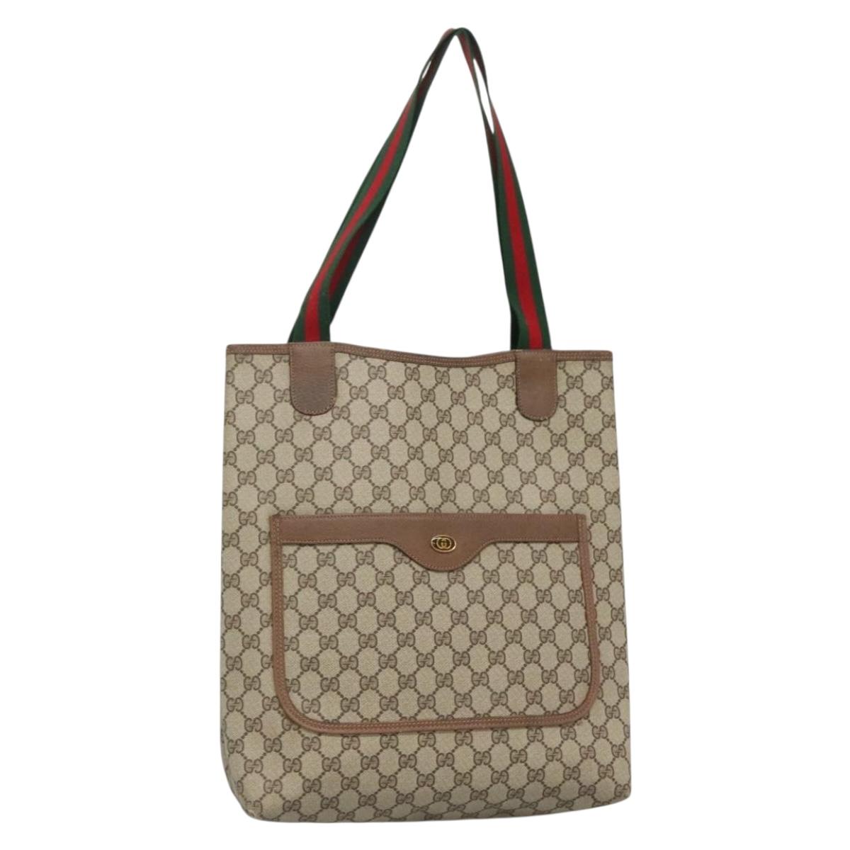 GUCCI GG Supreme Web Sherry Line Tote Bag PVC Beige Red 39 02 003 Auth 135373