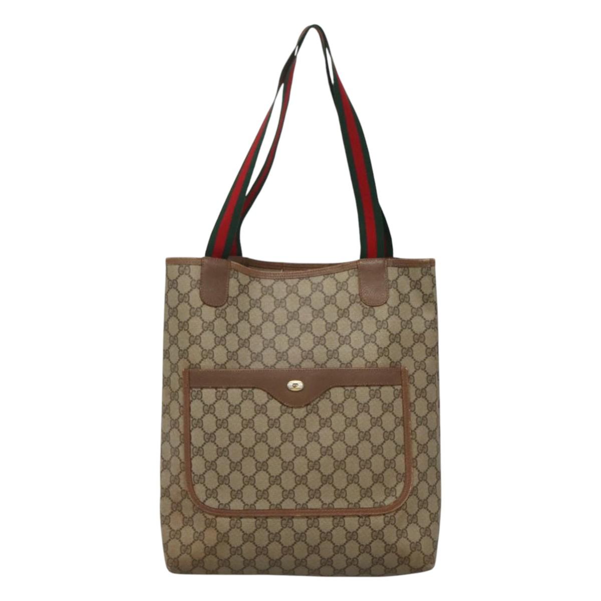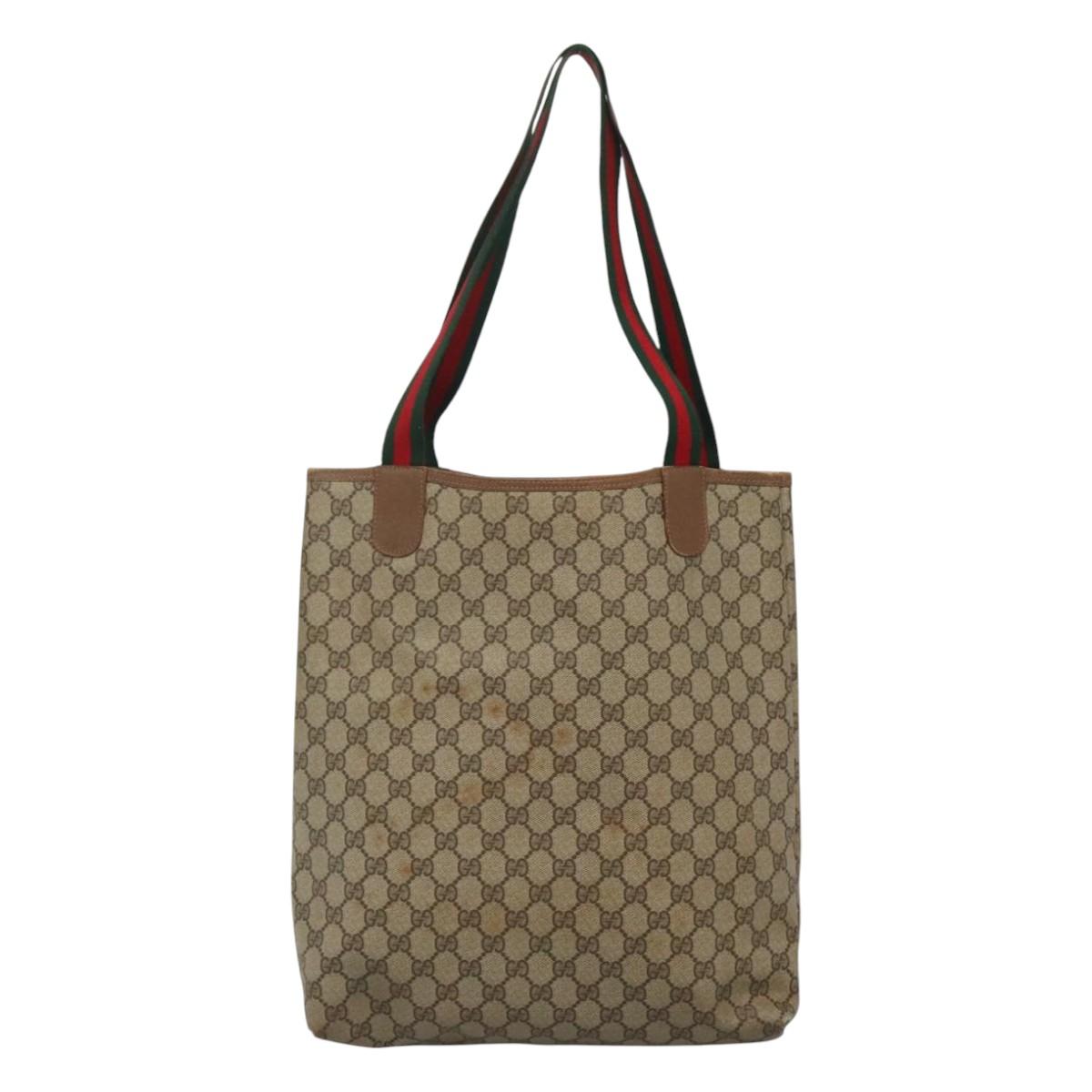 GUCCI GG Supreme Web Sherry Line Tote Bag PVC Beige Red 39 02 003 Auth BA405