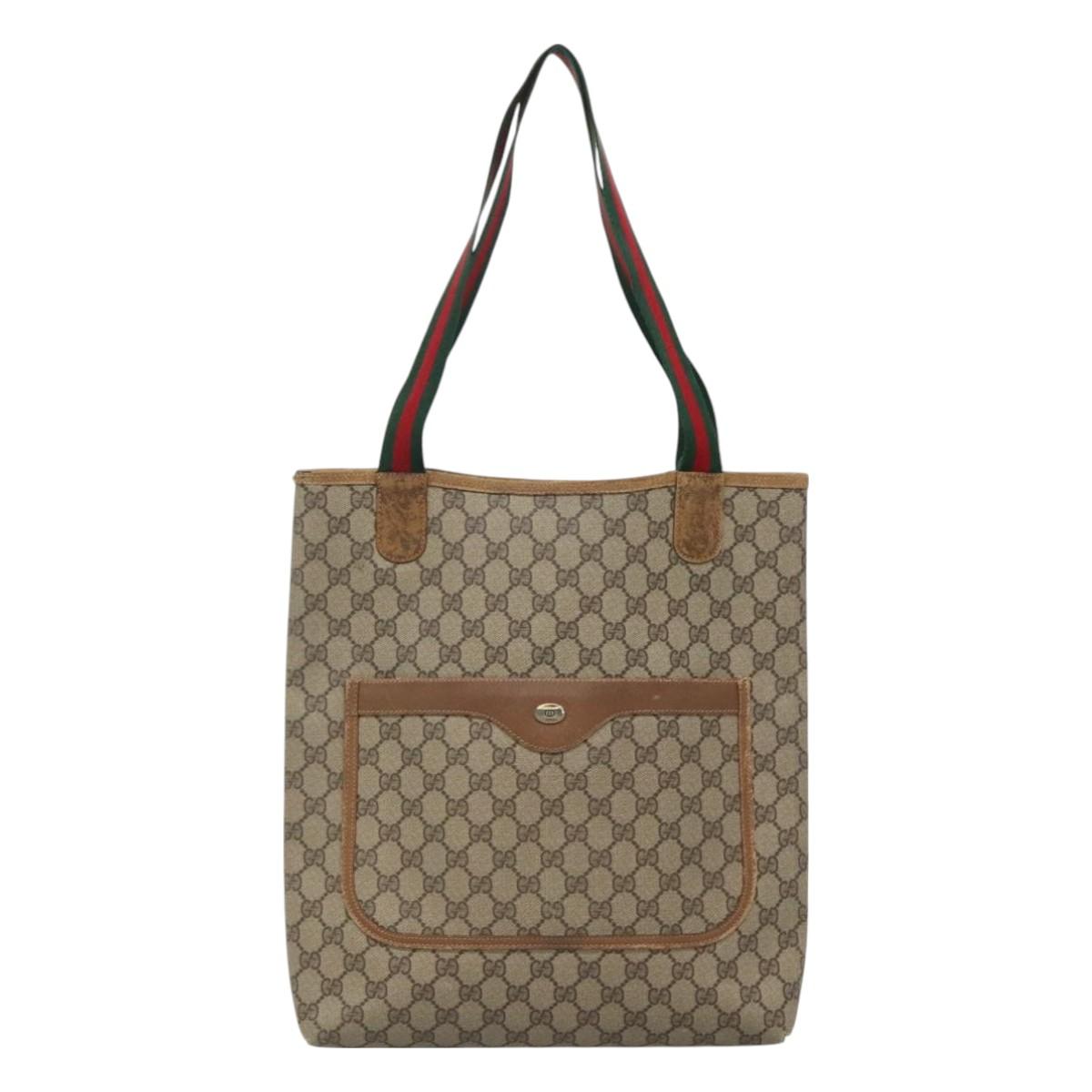 GUCCI GG Supreme Web Sherry Line Tote Bag PVC Beige Red 40 02 003 Auth 129047