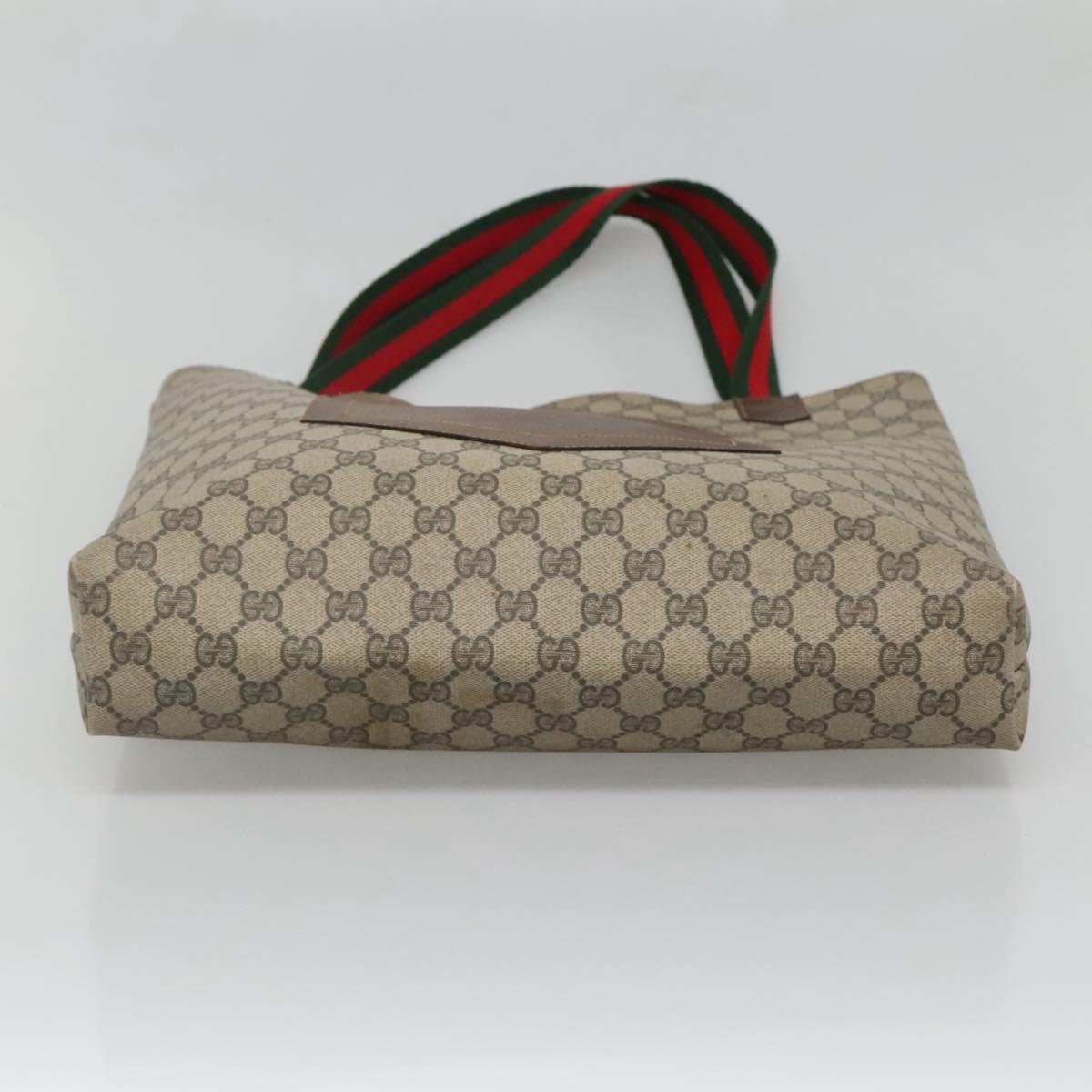 GUCCI GG Supreme Web Sherry Line Tote Bag PVC Beige Red Green Auth SW957