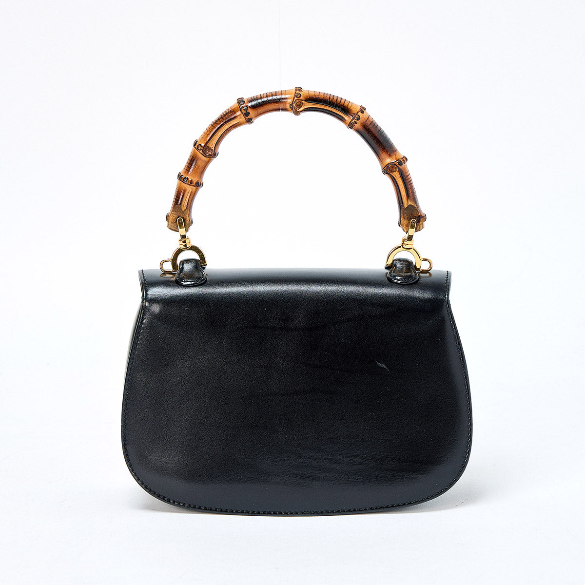 GUCCI Bamboo Hand Bag Black Gold Box Scarf Auth