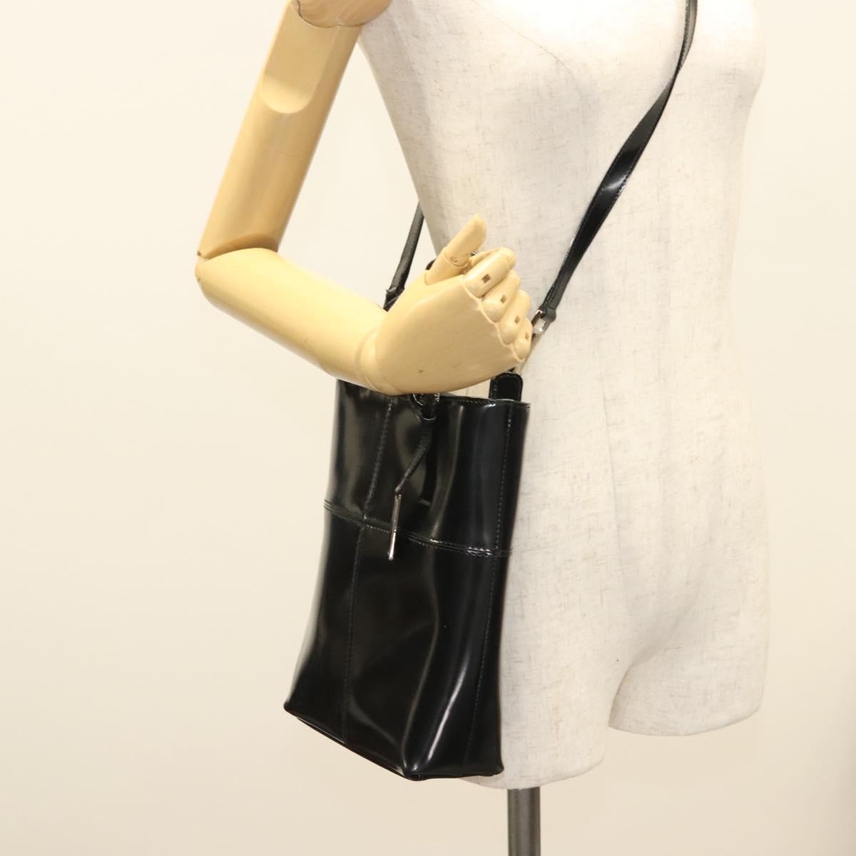 GUCCI Hand Bag Enamel 2way Black Gold 000 2113 0553 Auth ti3137