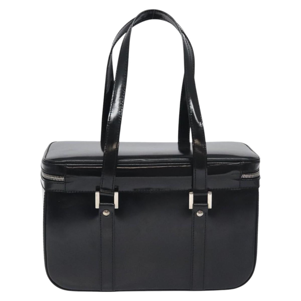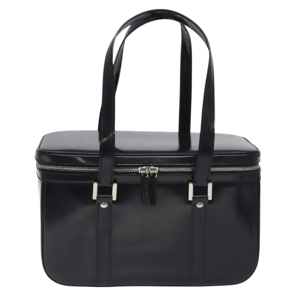 GUCCI Hand Bag Enamel Black Silver Auth am8761