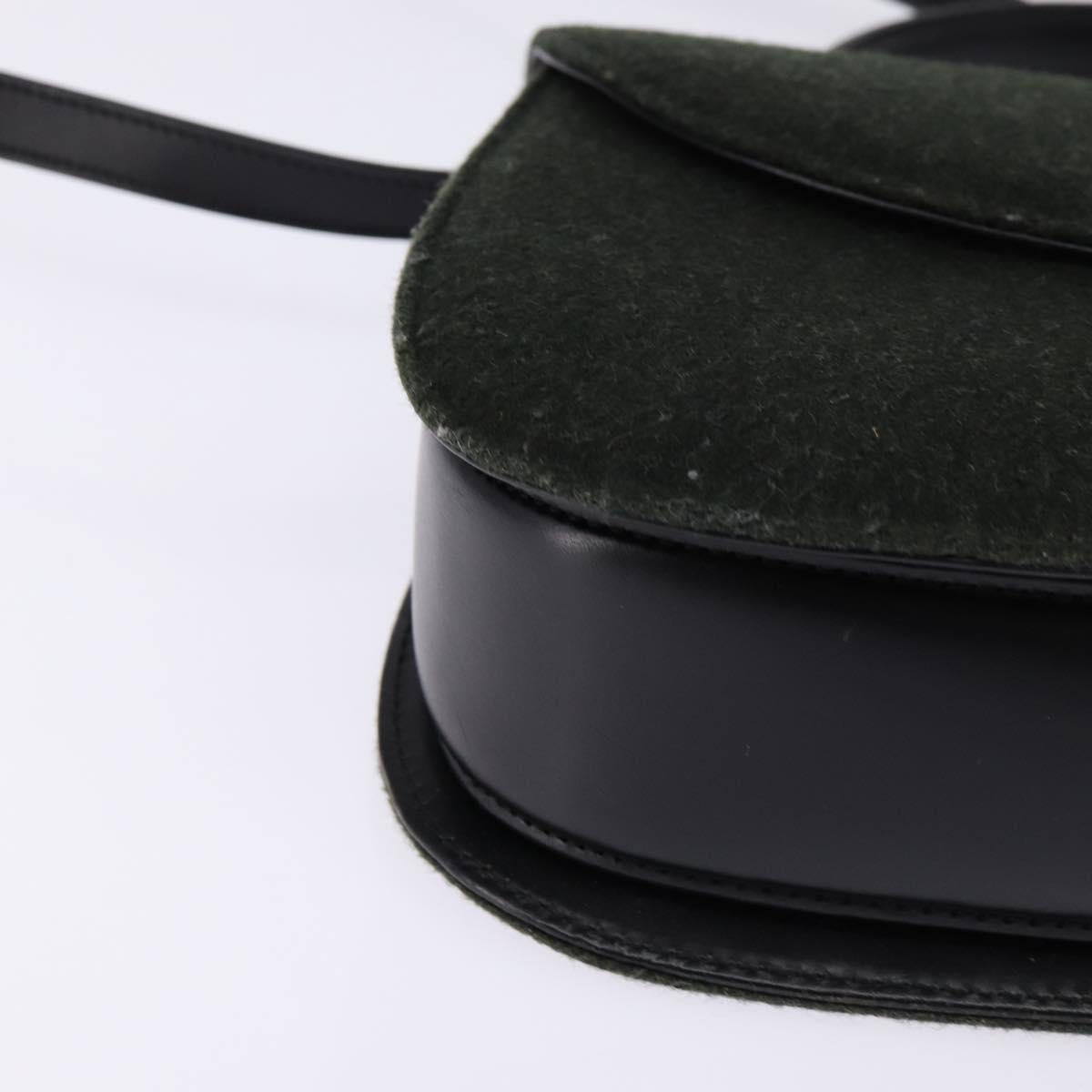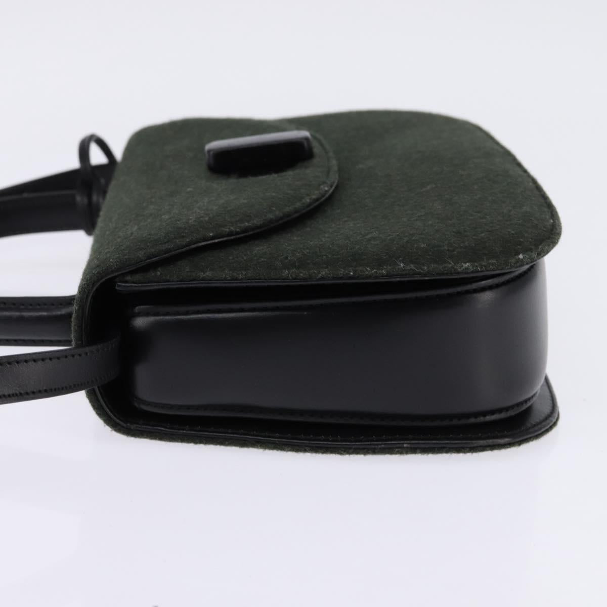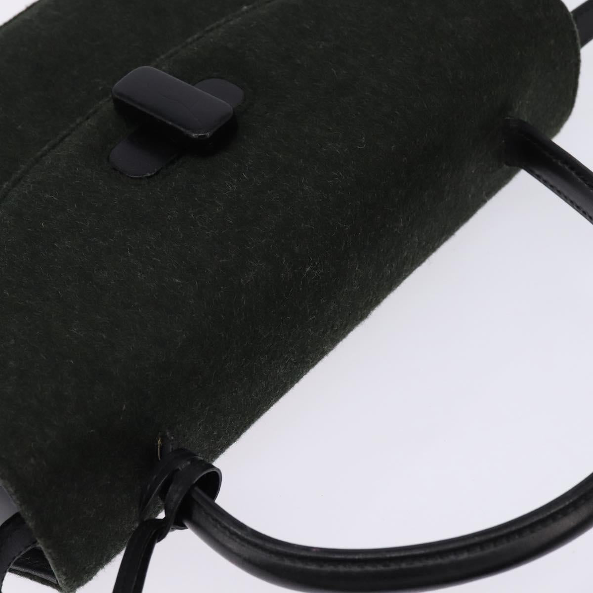 GUCCI Hand Bag Felt 2way Khaki Silver Auth 144382
