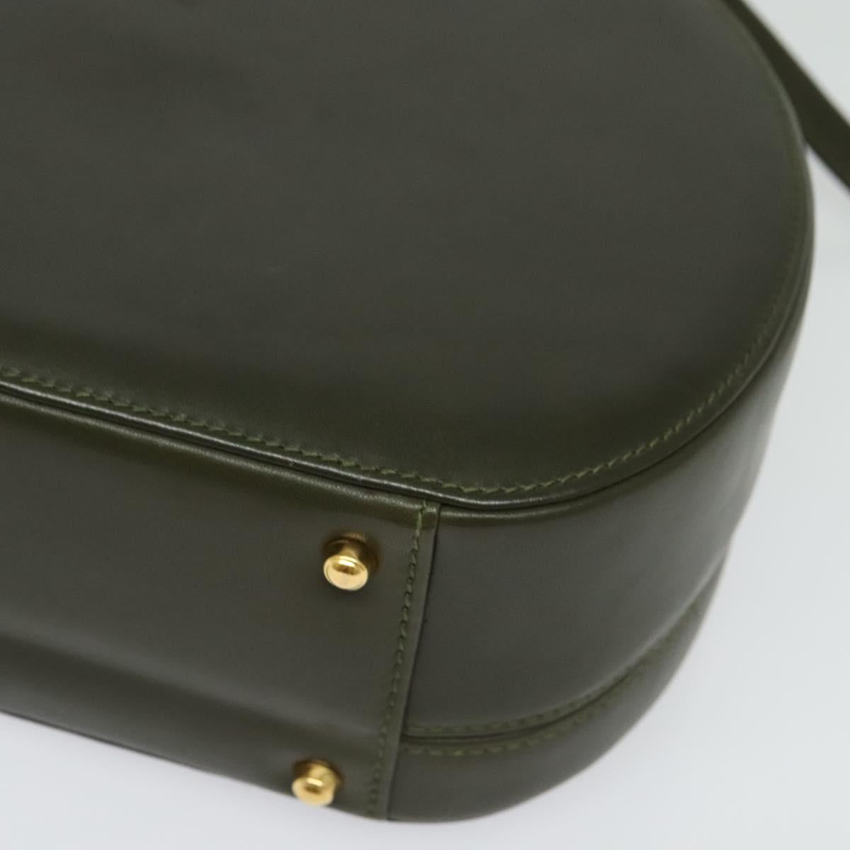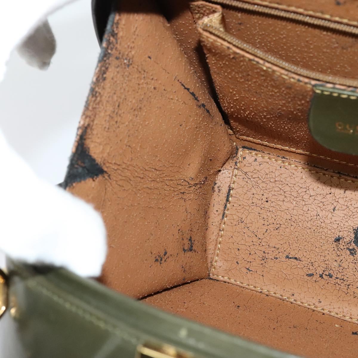 GUCCI Hand Bag Leather 2way Green Gold Auth 136078