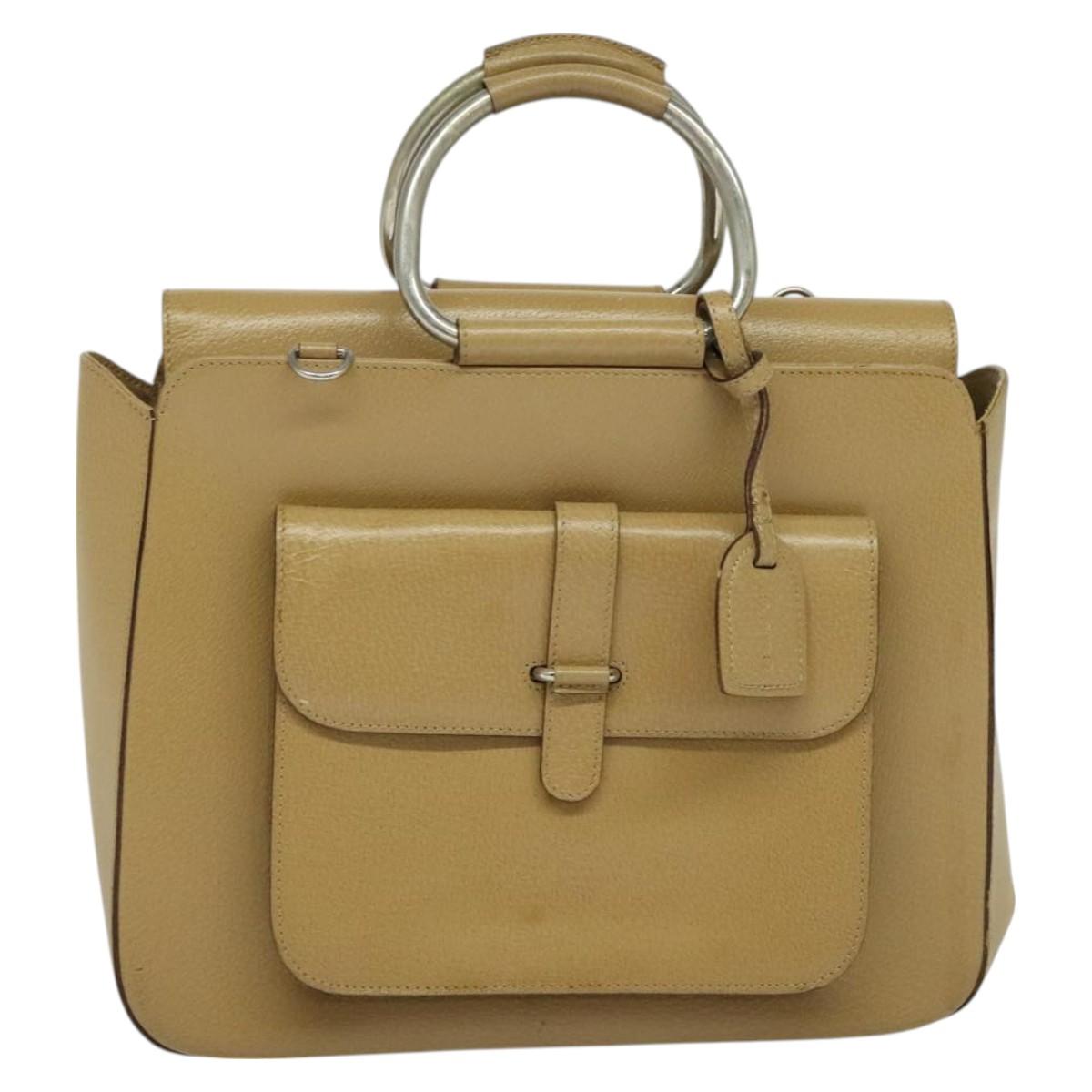 GUCCI Hand Bag Leather Beige Silver 000 2058 0307 5 Auth 126742