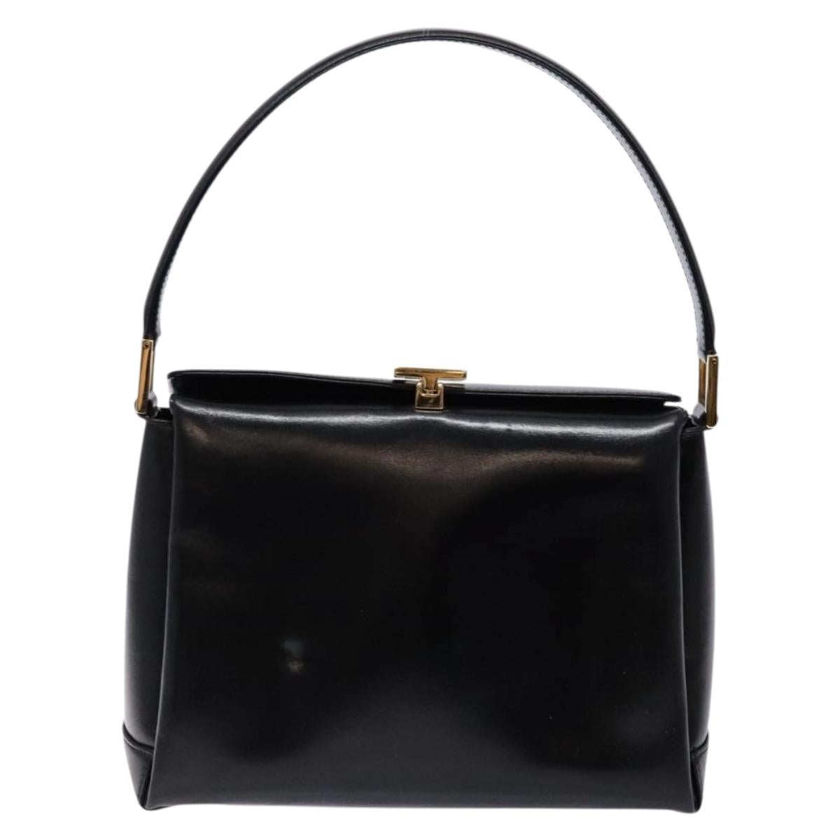 GUCCI Hand Bag Leather Black Gold 000 1448 1269 Auth ep9909