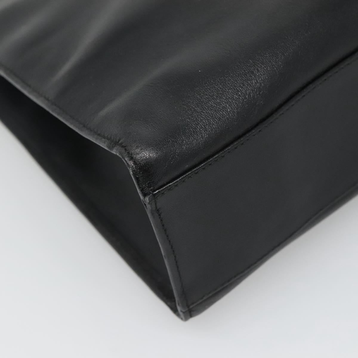 GUCCI Hand Bag Leather Black Gold Auth th5874