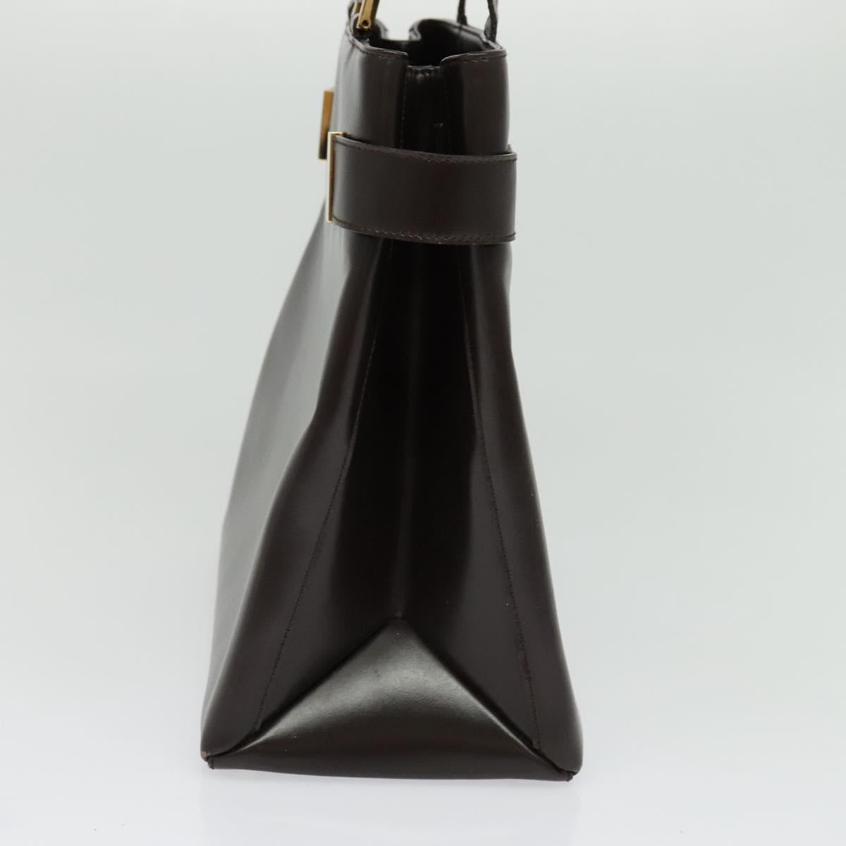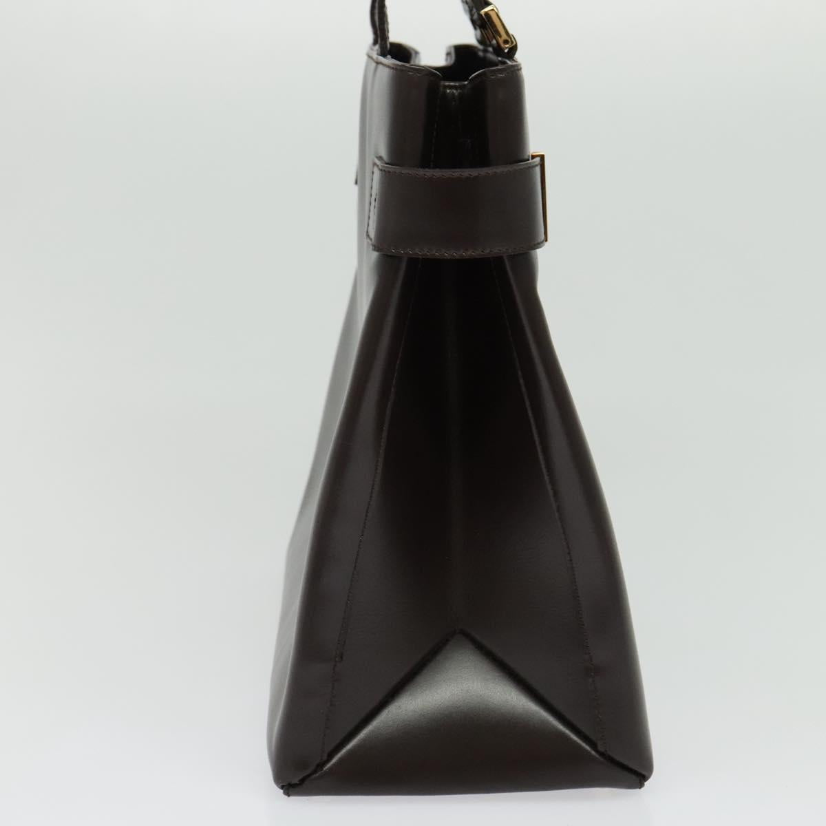 GUCCI Hand Bag Leather Brown gold Auth bs28876