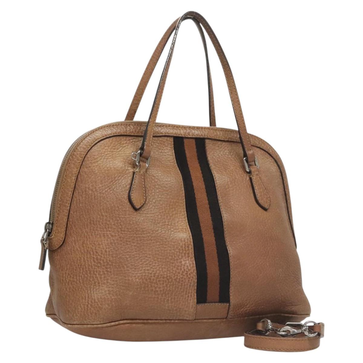 GUCCI Hand Bag Leather Outlet 2way Brown Silver 420023 Auth hk2583