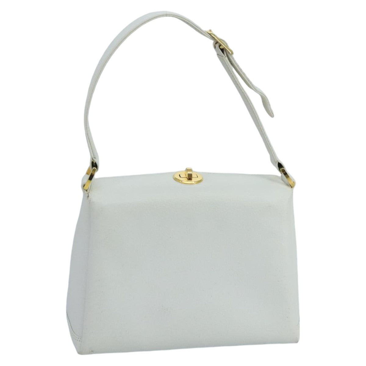 GUCCI Hand Bag Leather White Gold Auth mr709
