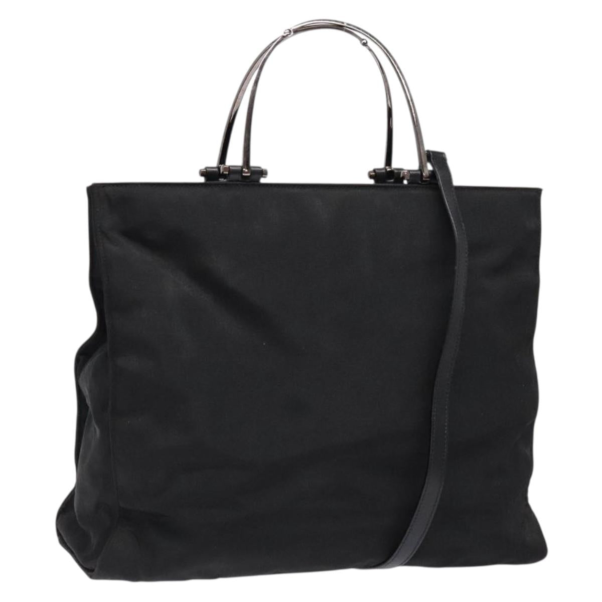 GUCCI Hand Bag Nylon 2way Black Silver 002 1028 2684 Auth 139157
