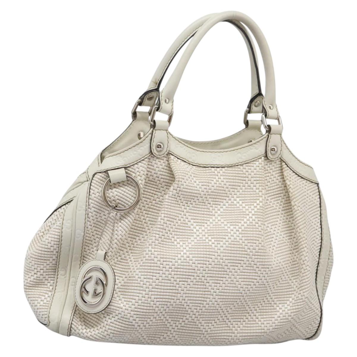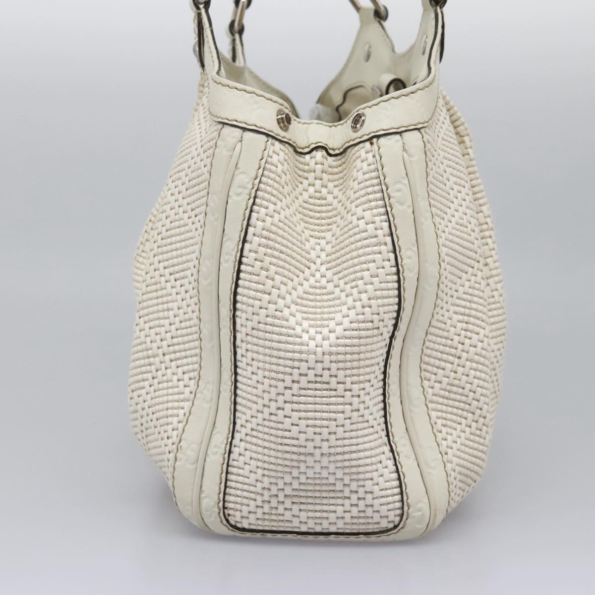 GUCCI Hand Bag Raffia Silver White 211944 Auth ep7490