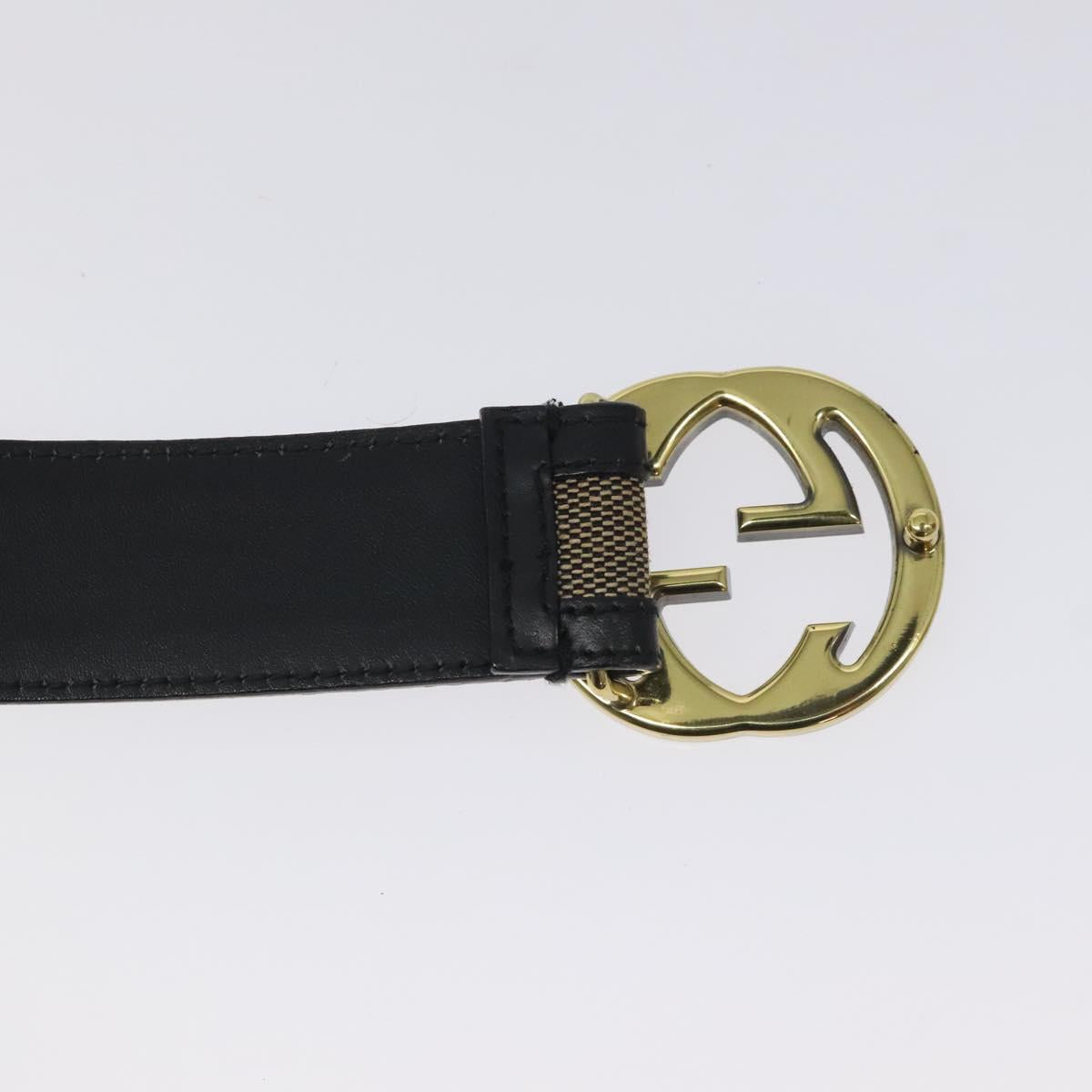 GUCCI Interlocking Belt Canvas 33.1"" Black Gold 29882 Auth th6038
