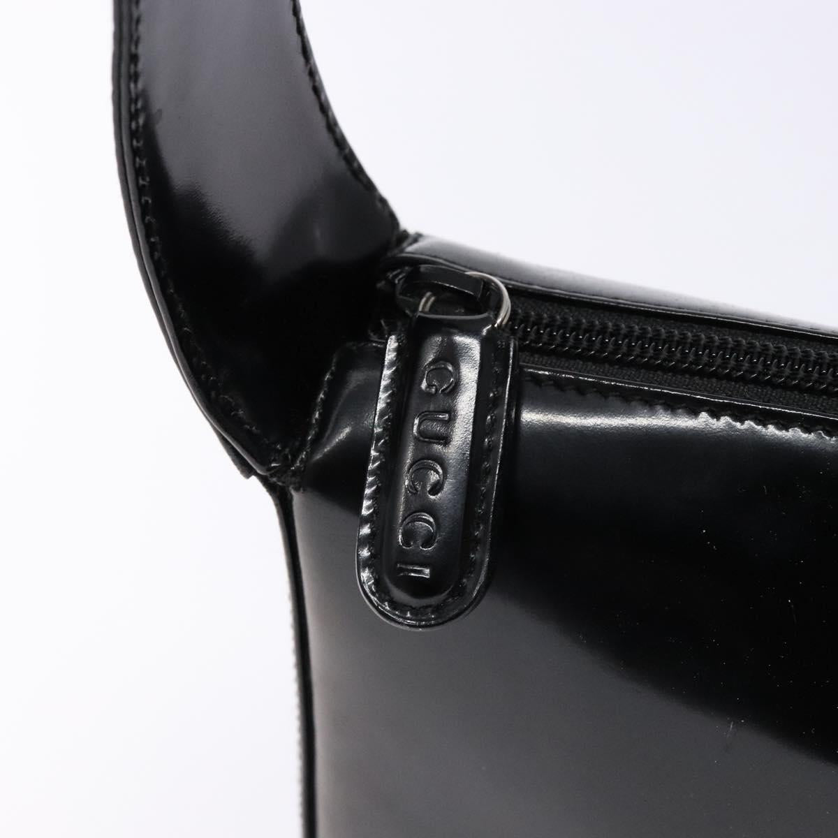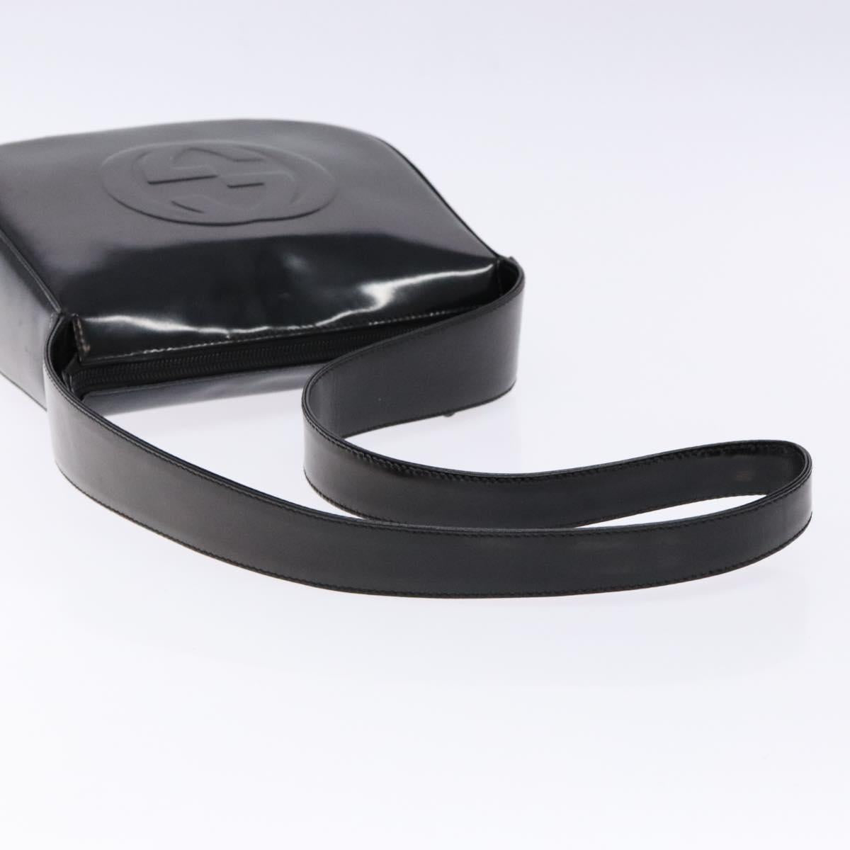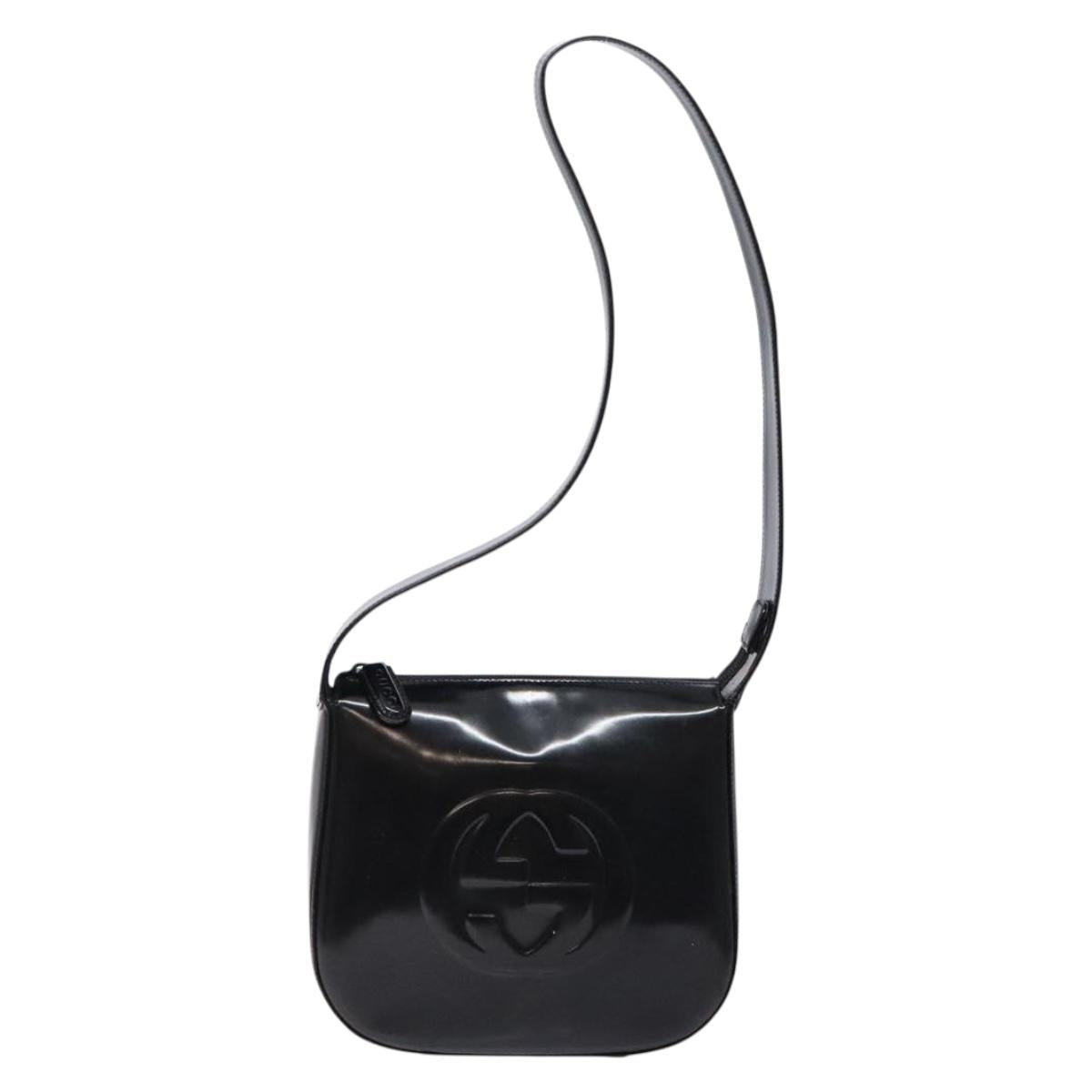 GUCCI Interlocking Shoulder Bag Enamel Black Silver 007 2113 0250 Auth 139156