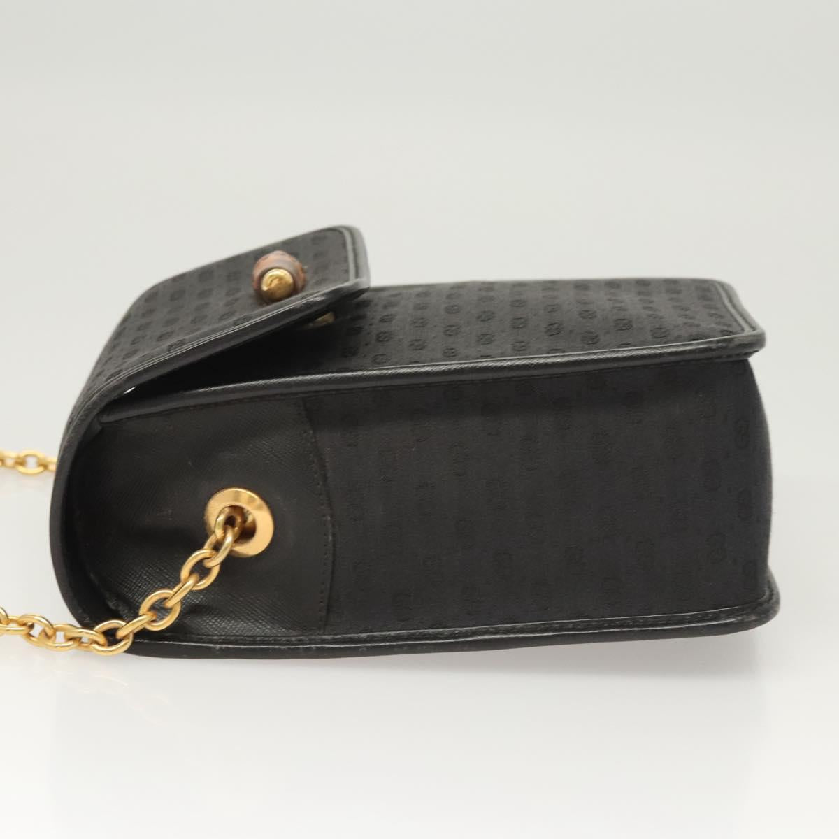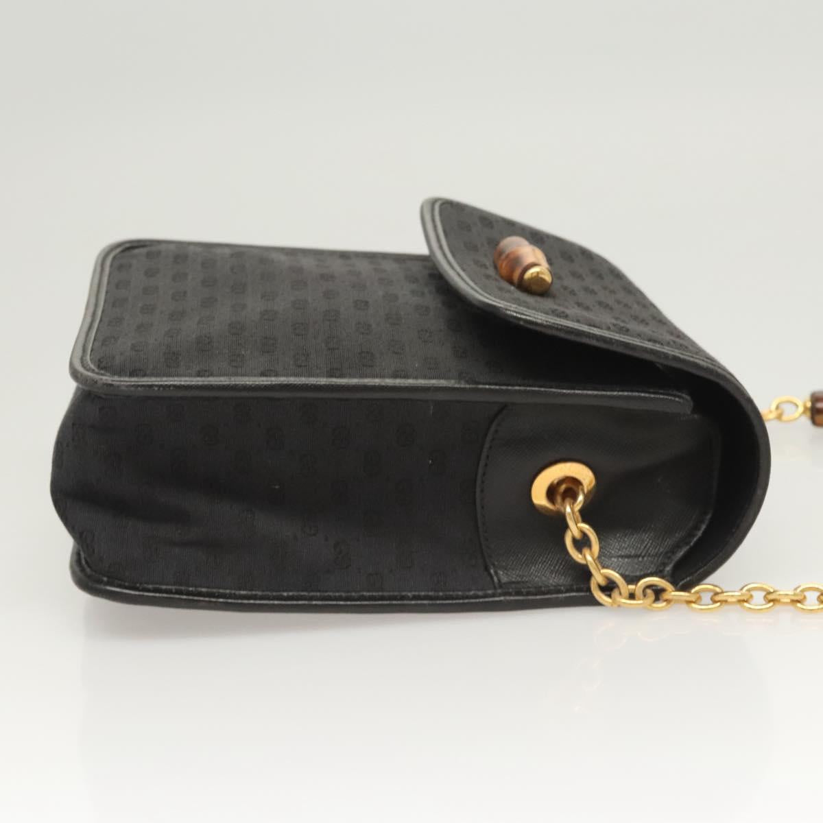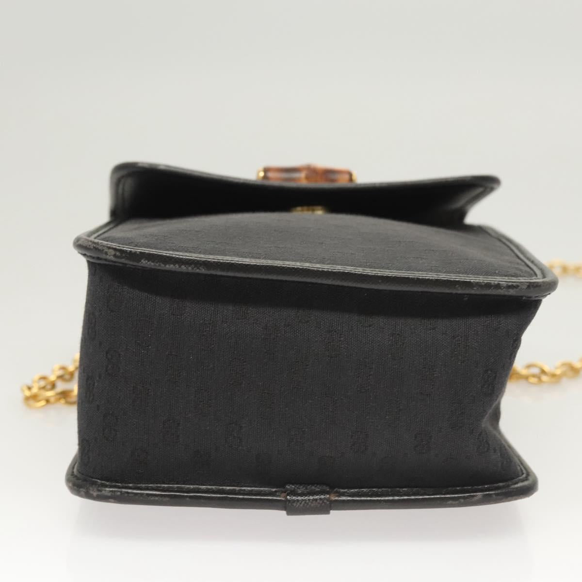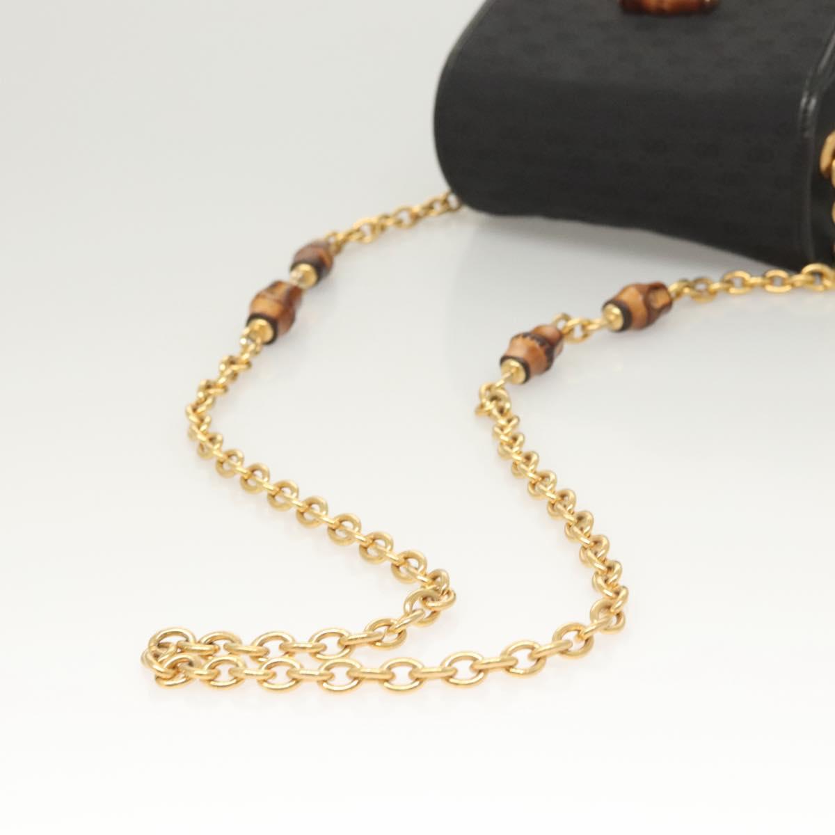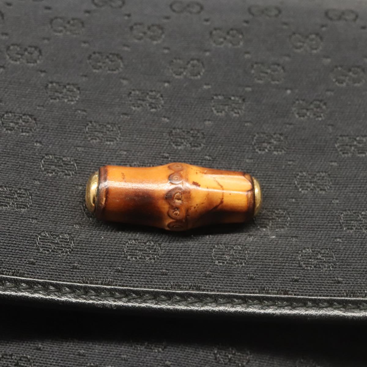 GUCCI Micro GG Canvas Bamboo Shoulder Bag PVC Black Gold Auth sw753