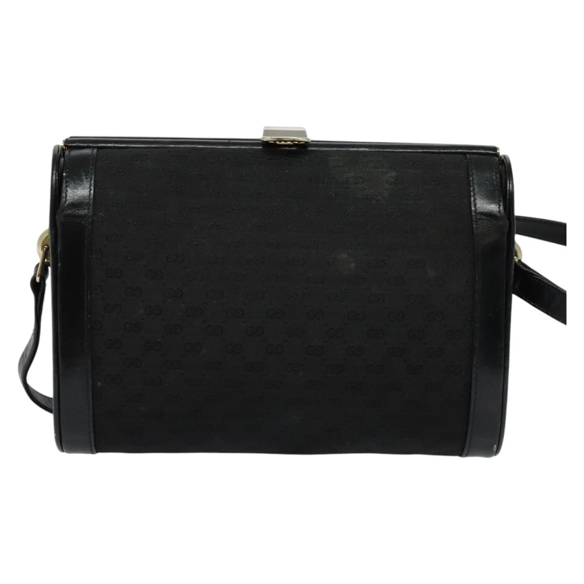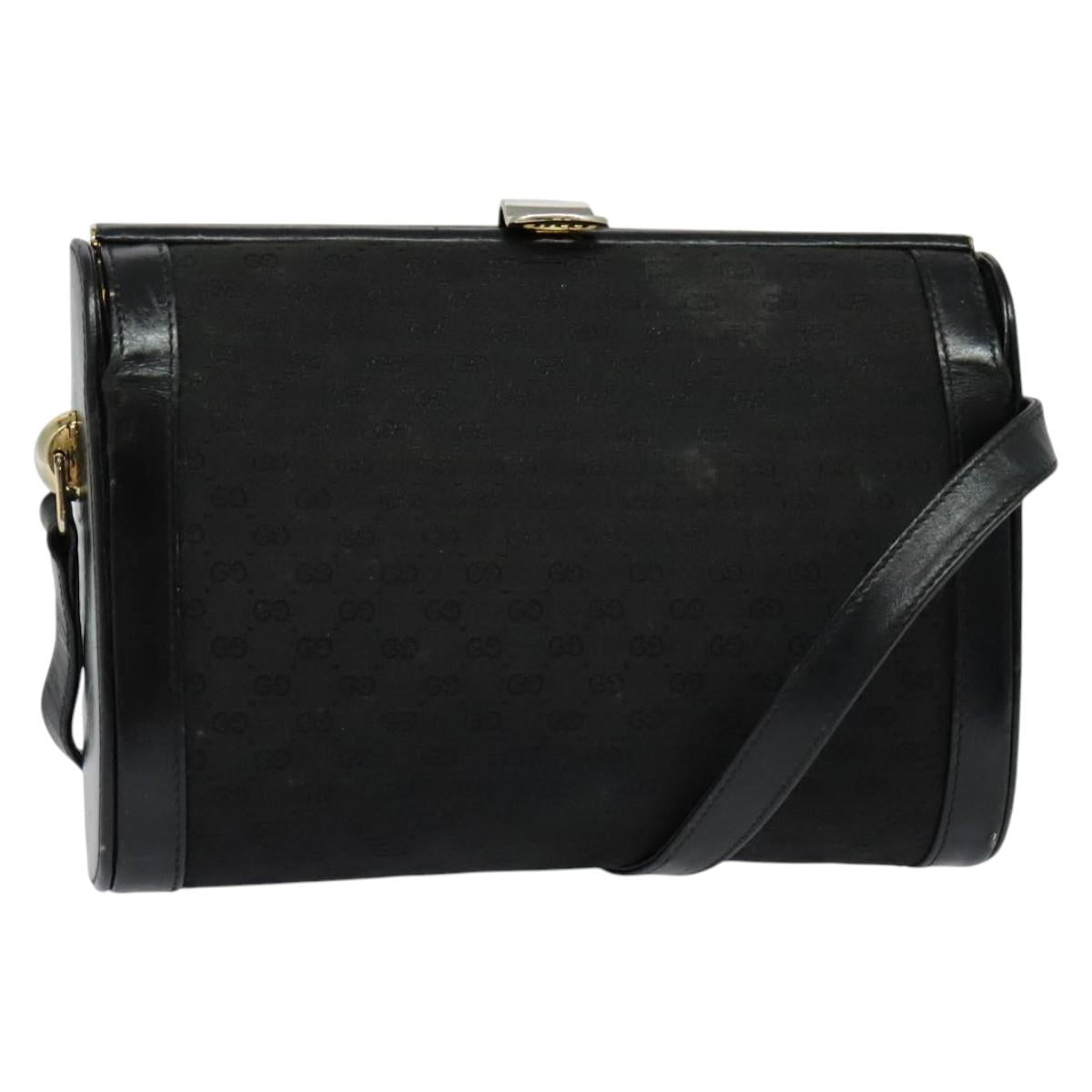 GUCCI Micro GG Canvas Shoulder Bag Leather Gold Black Auth ep10465