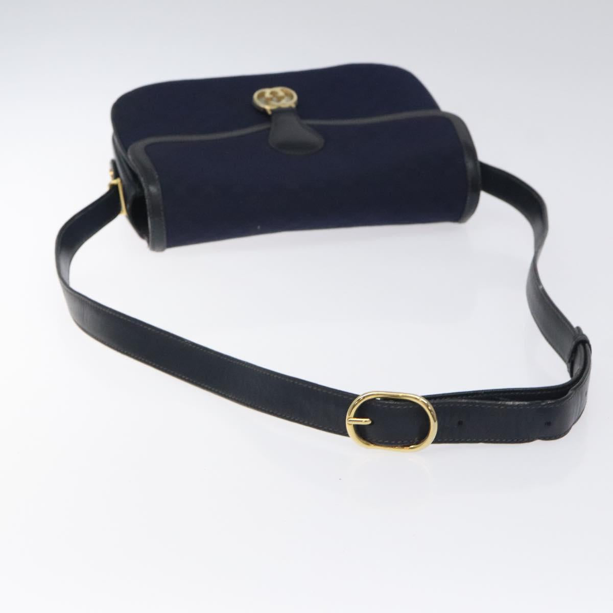 GUCCI Micro GG Canvas Shoulder Bag Navy Gold Auth ep8779