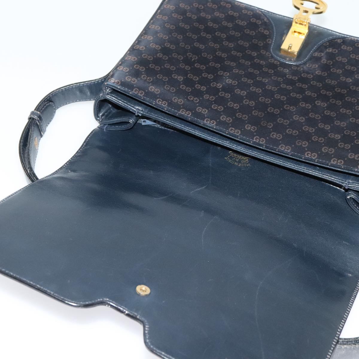 GUCCI Micro GG Canvas Shoulder Bag Suede Navy Gold Auth 139521