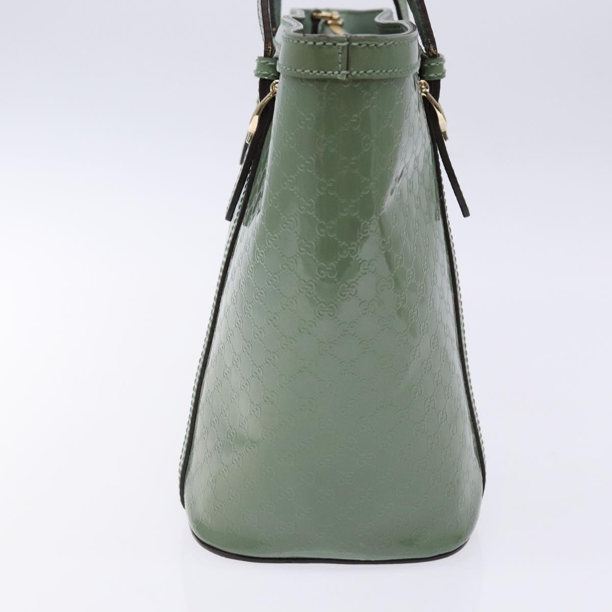 GUCCI Micro GG Canvas Tote Bag Patent leather Green Gold 336776 Auth 133418