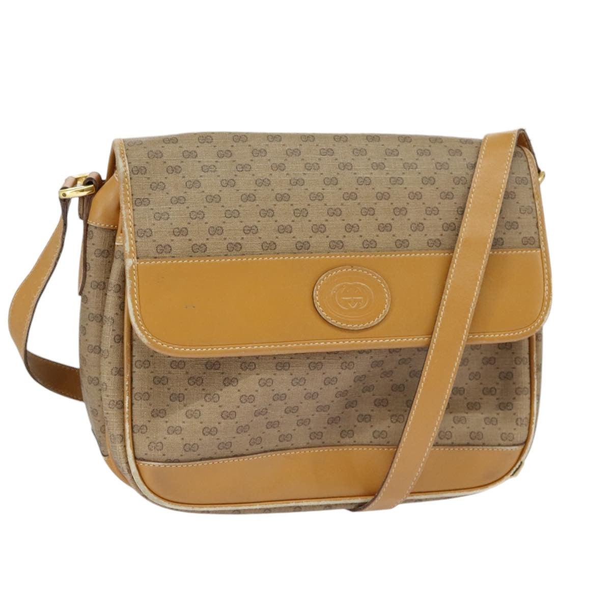 GUCCI Micro GG Supreme Shoulder Bag PVC Beige Gold Auth 99301