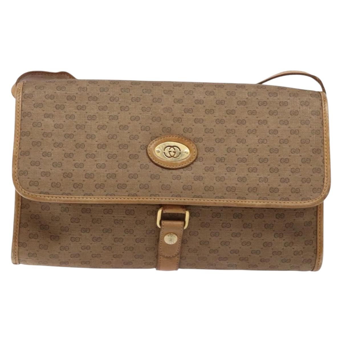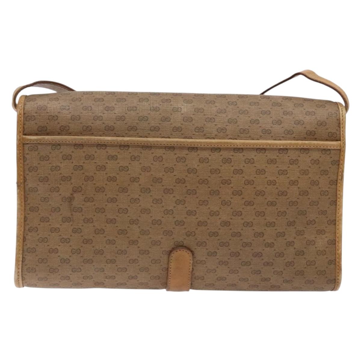 GUCCI Micro GG Supreme Shoulder Bag PVC Beige Gold Auth BA4331