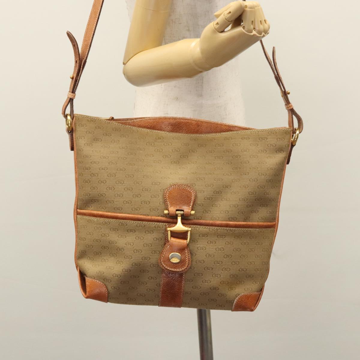 GUCCI Micro GG Supreme Shoulder Bag PVC Leather Beige Brown gold Auth ep7547