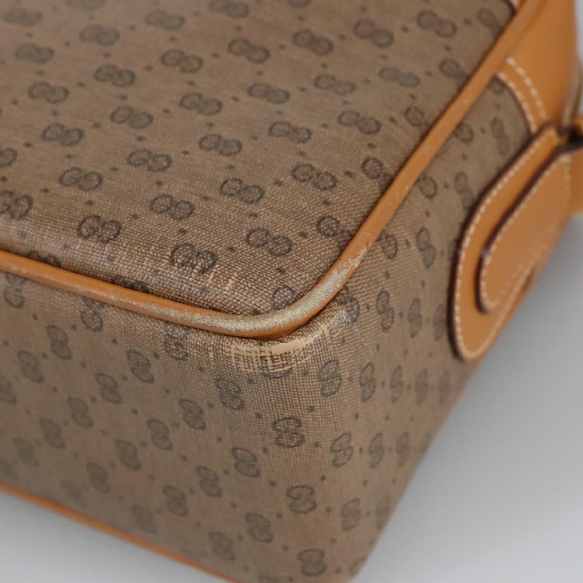 GUCCI Micro GG Supreme Shoulder Bag PVC Leather Beige Gold Auth 101192