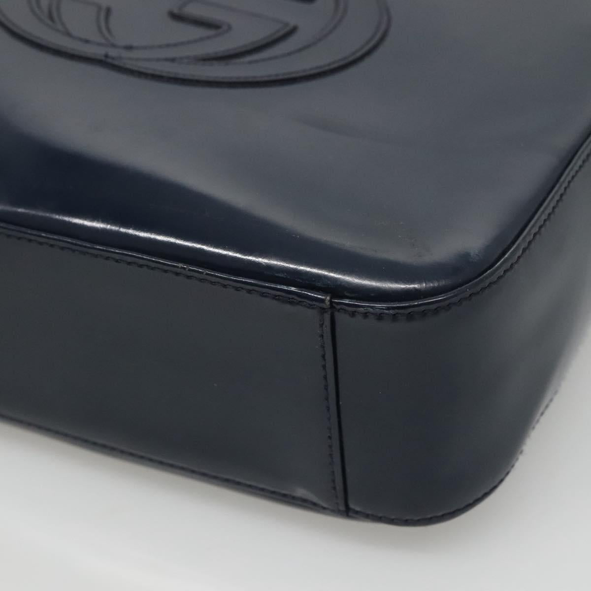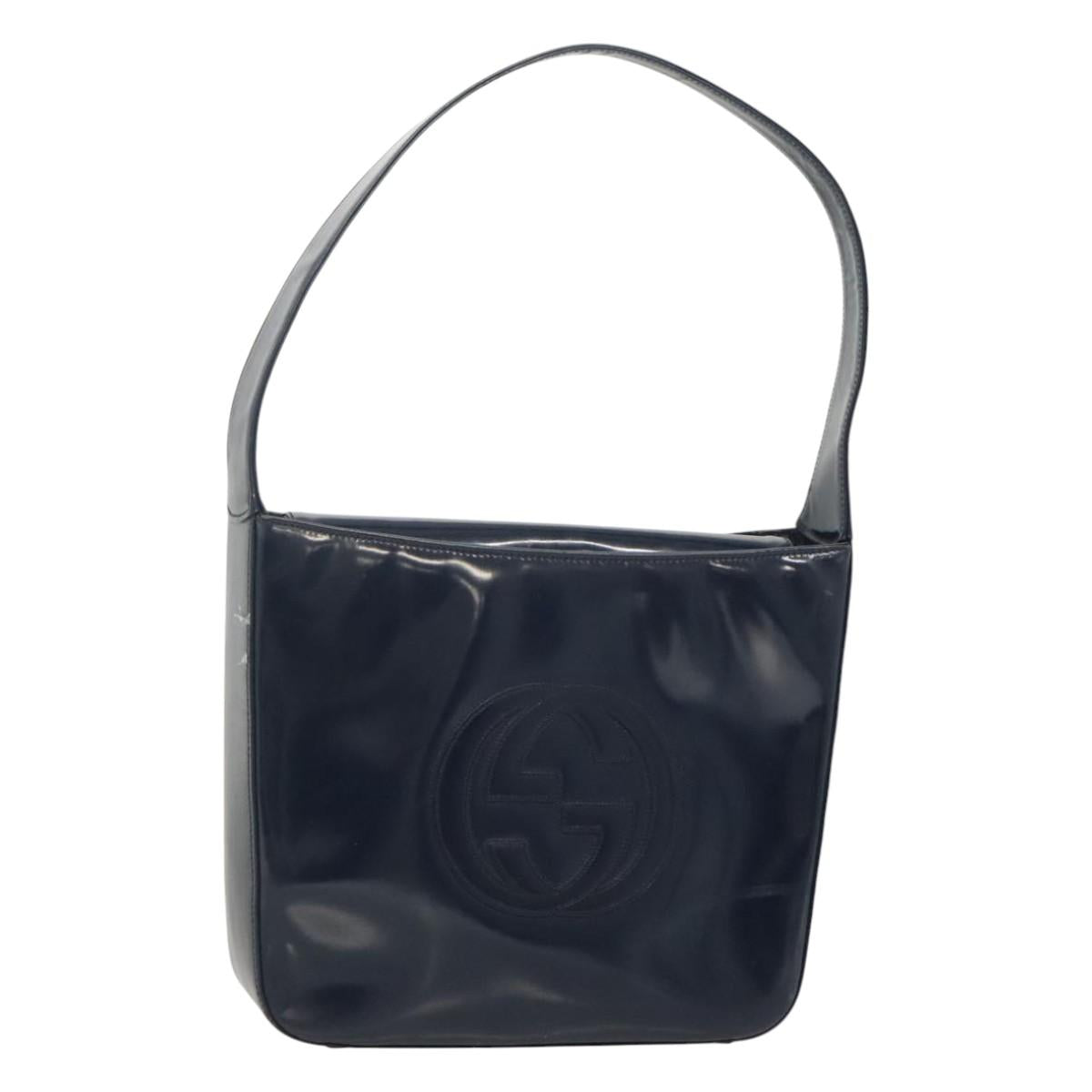GUCCI Patent leather Shoulder Bag Navy Silver 000 1046 0506 Auth ep8474