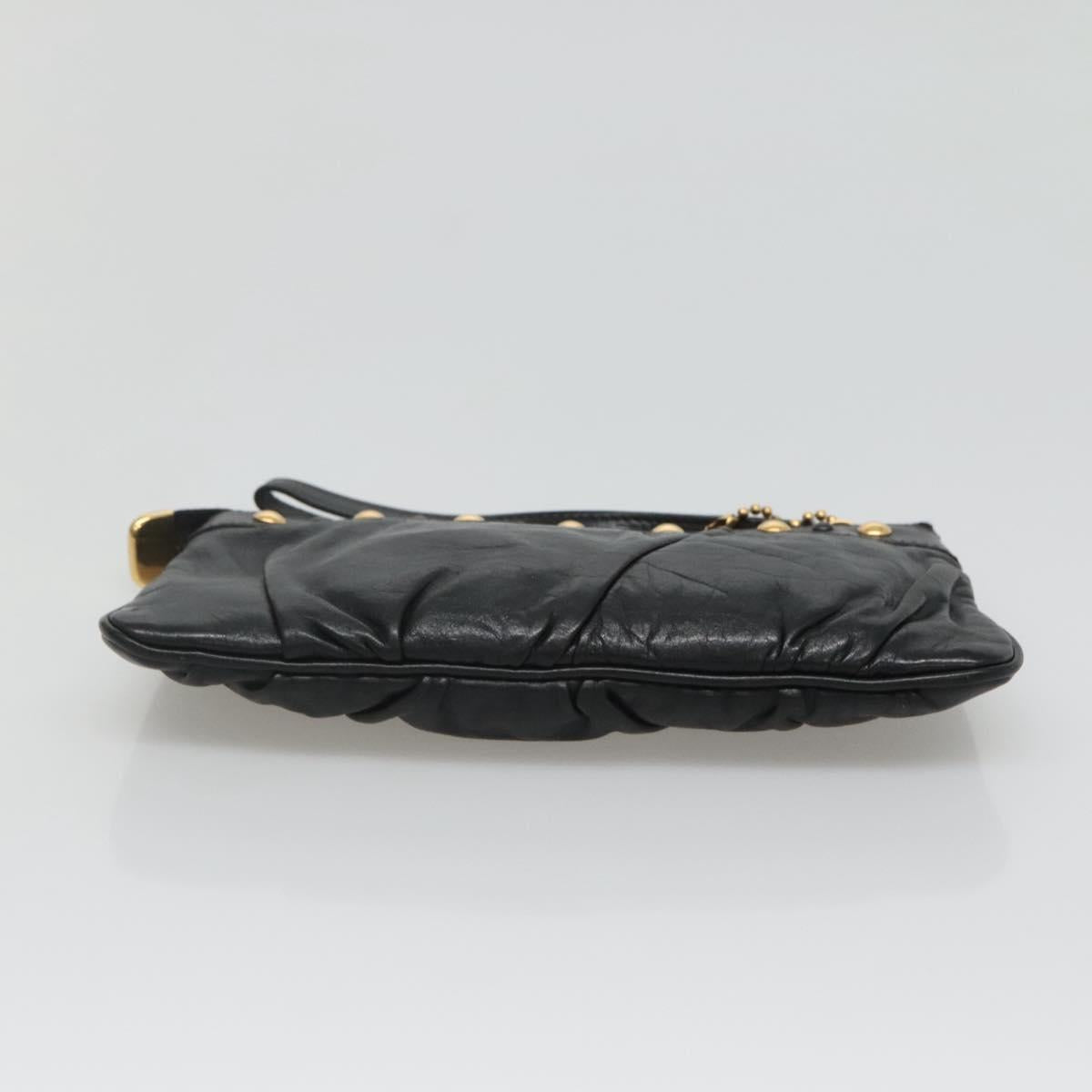 GUCCI Pouch Leather Black Gold 208570 Auth mr1227