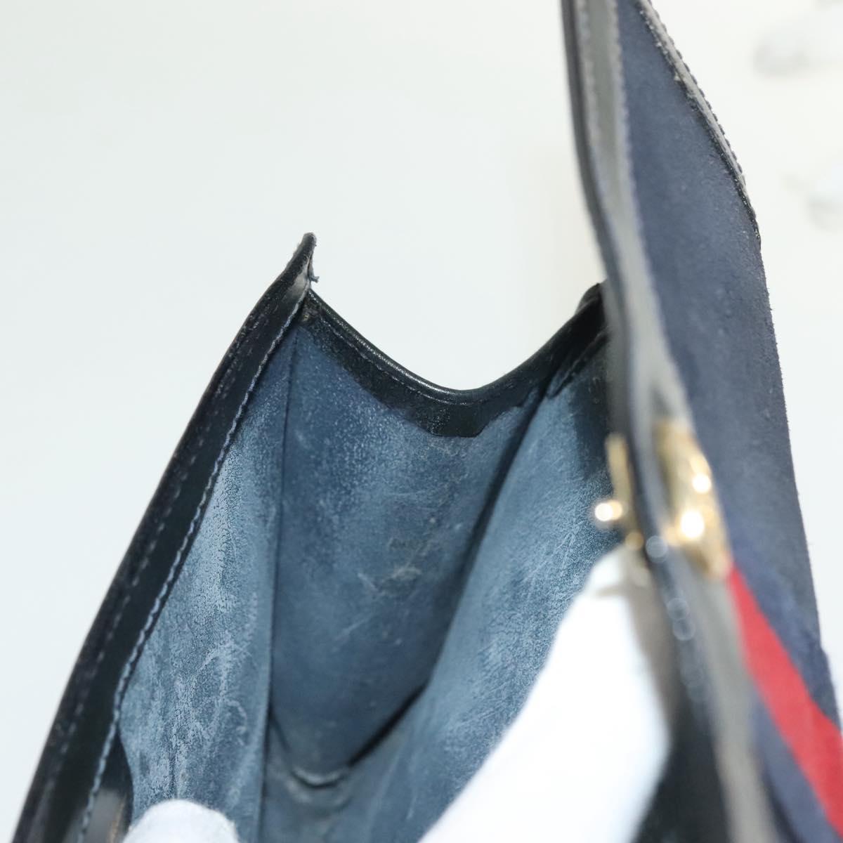 GUCCI Sherry Line Clutch Bag Suede Navy Red gold Auth 137579
