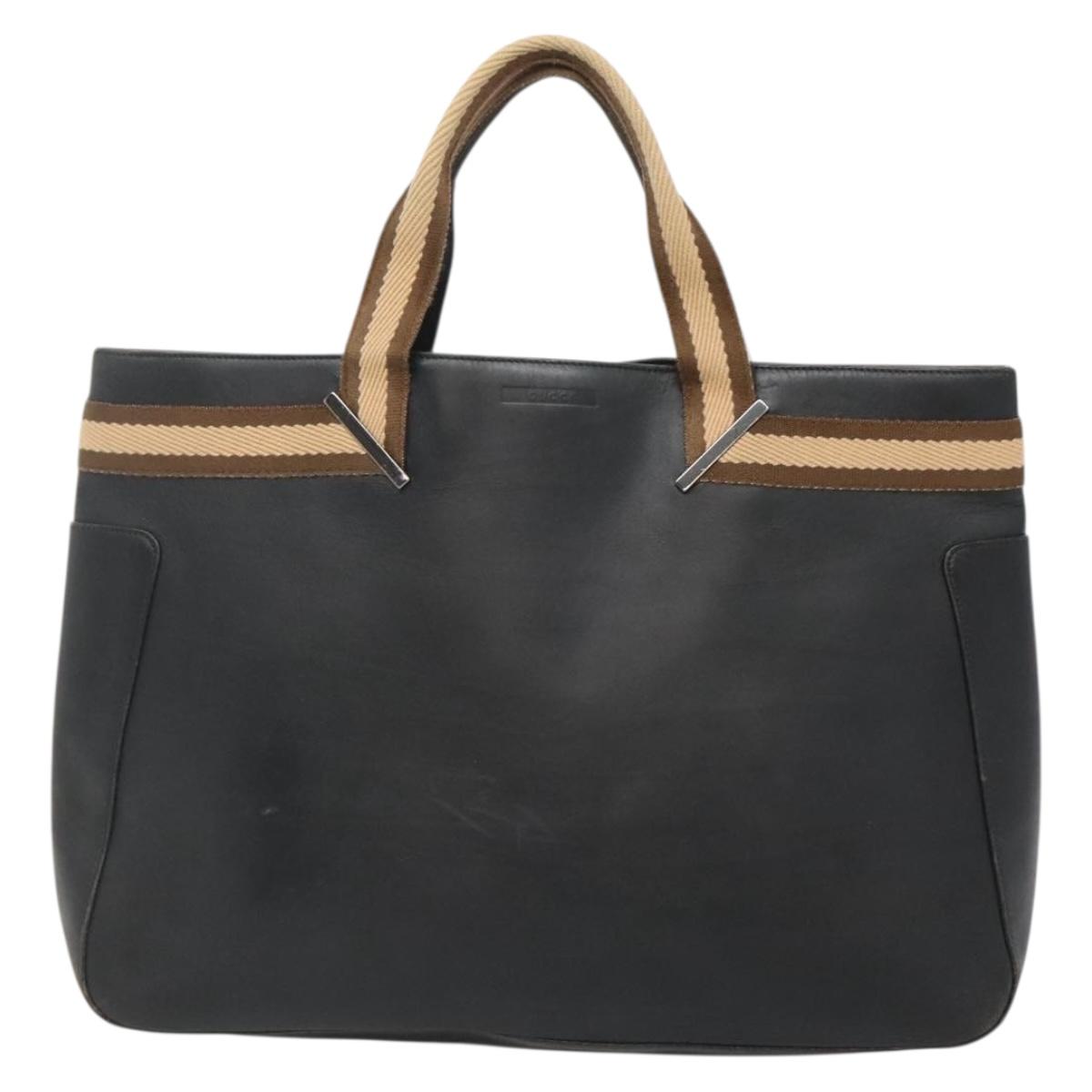 GUCCI Sherry Line Tote Bag Leather Black Silver 002 1134 Auth bs27562