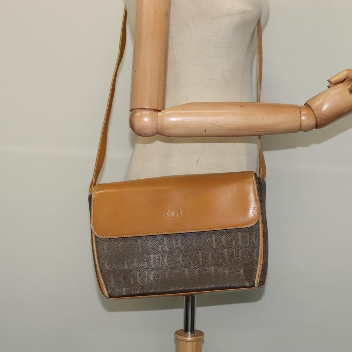 GUCCI Shoulder Bag Canvas Leather Brown Gold Auth ep10464