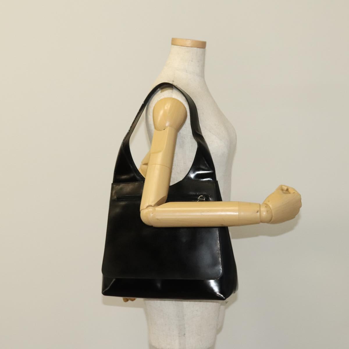 GUCCI Shoulder Bag Enamel Black Silver 002 1705 0424 Auth bs27922