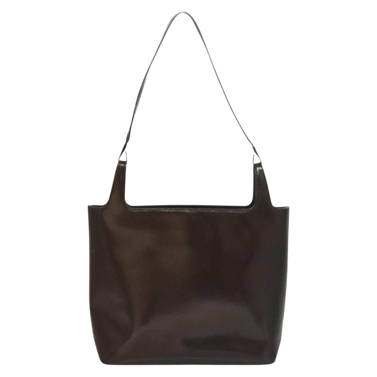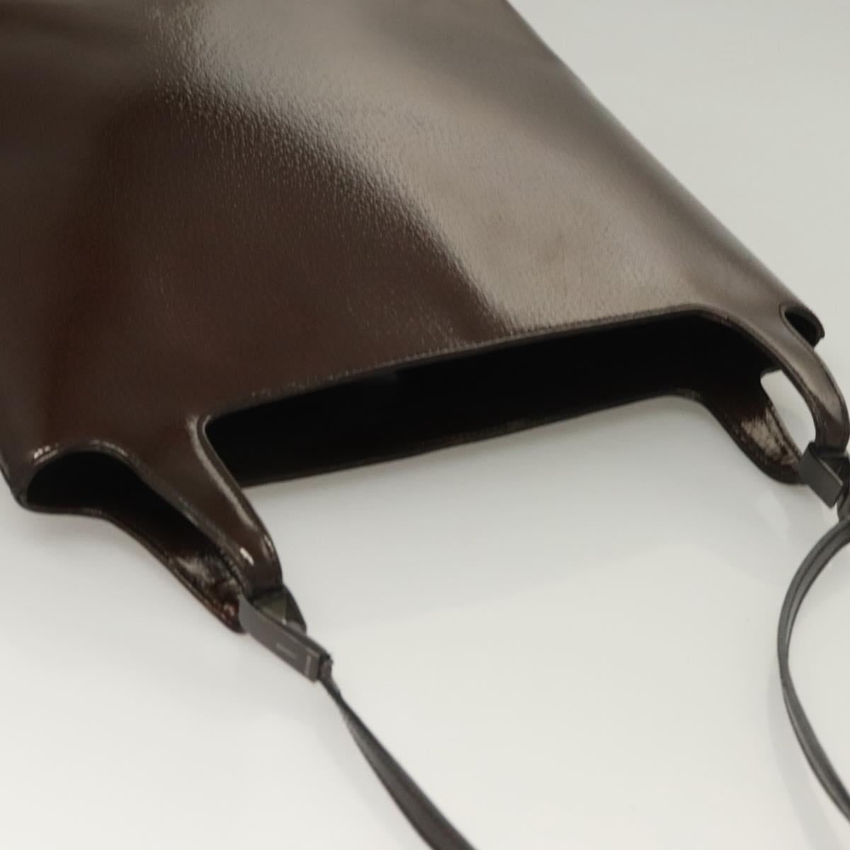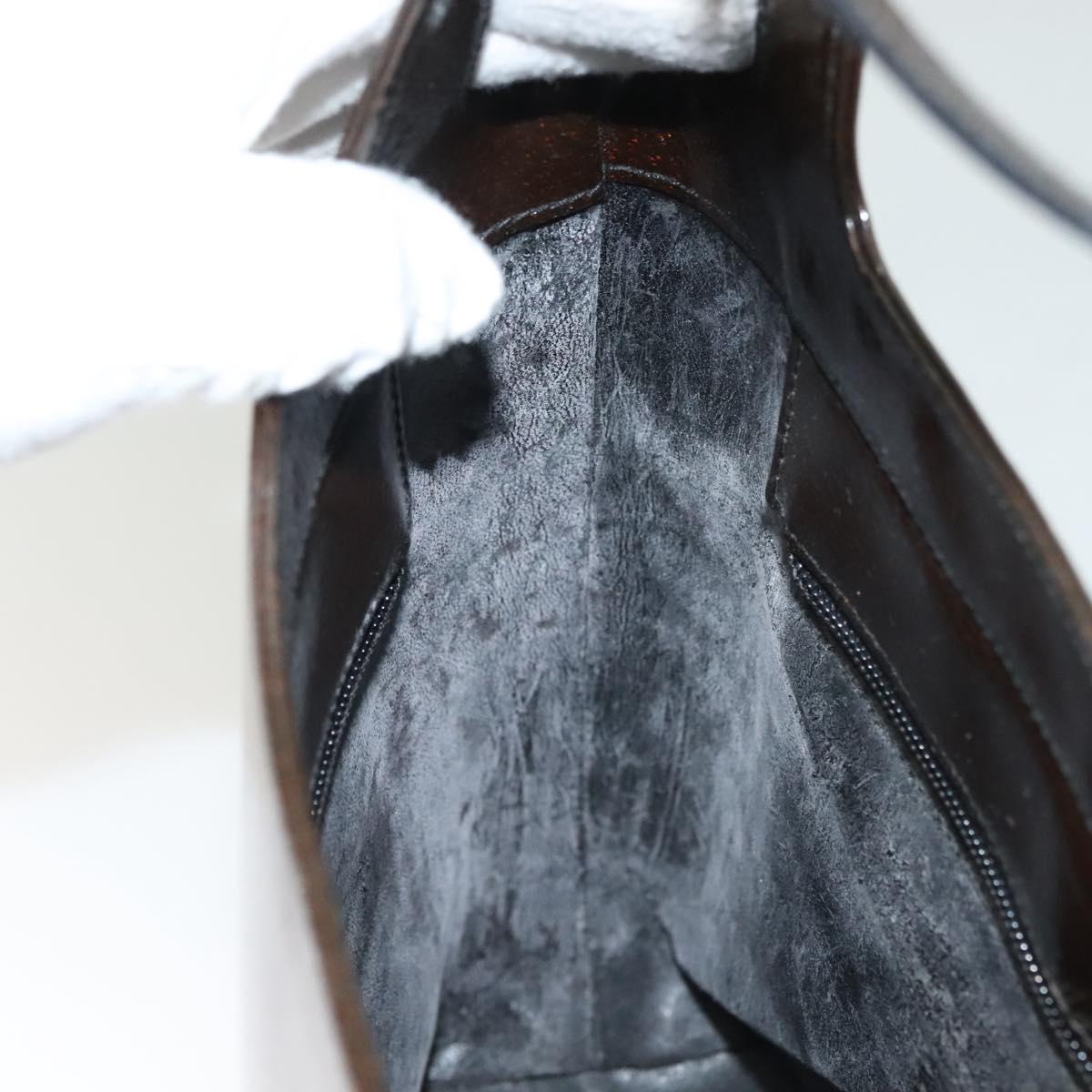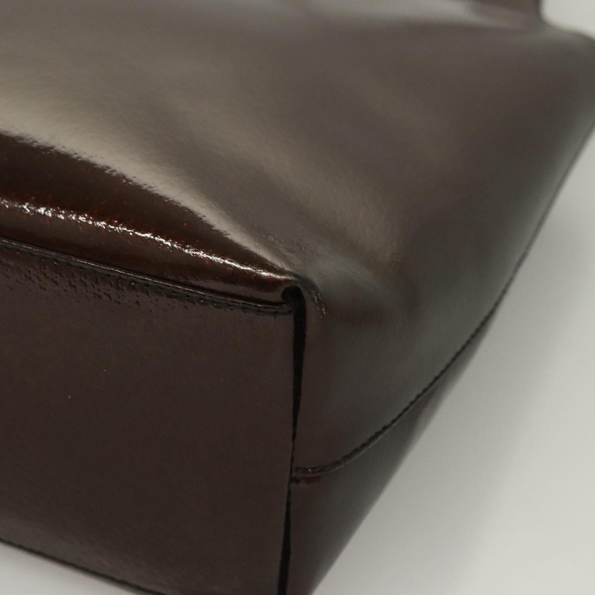 GUCCI Shoulder Bag Enamel Brown Silver 001 2058 3021 Auth bs28279