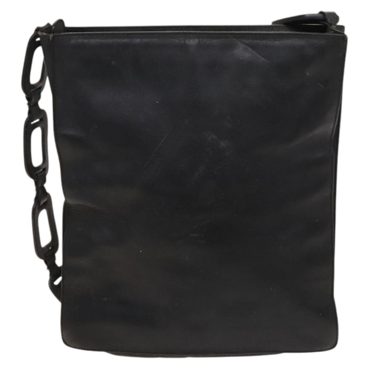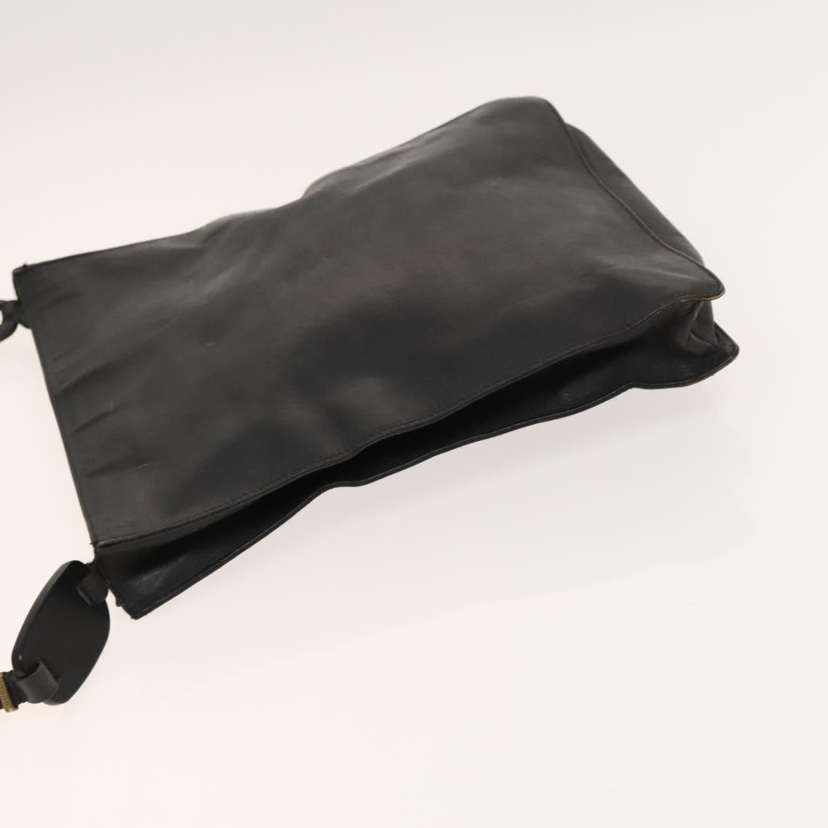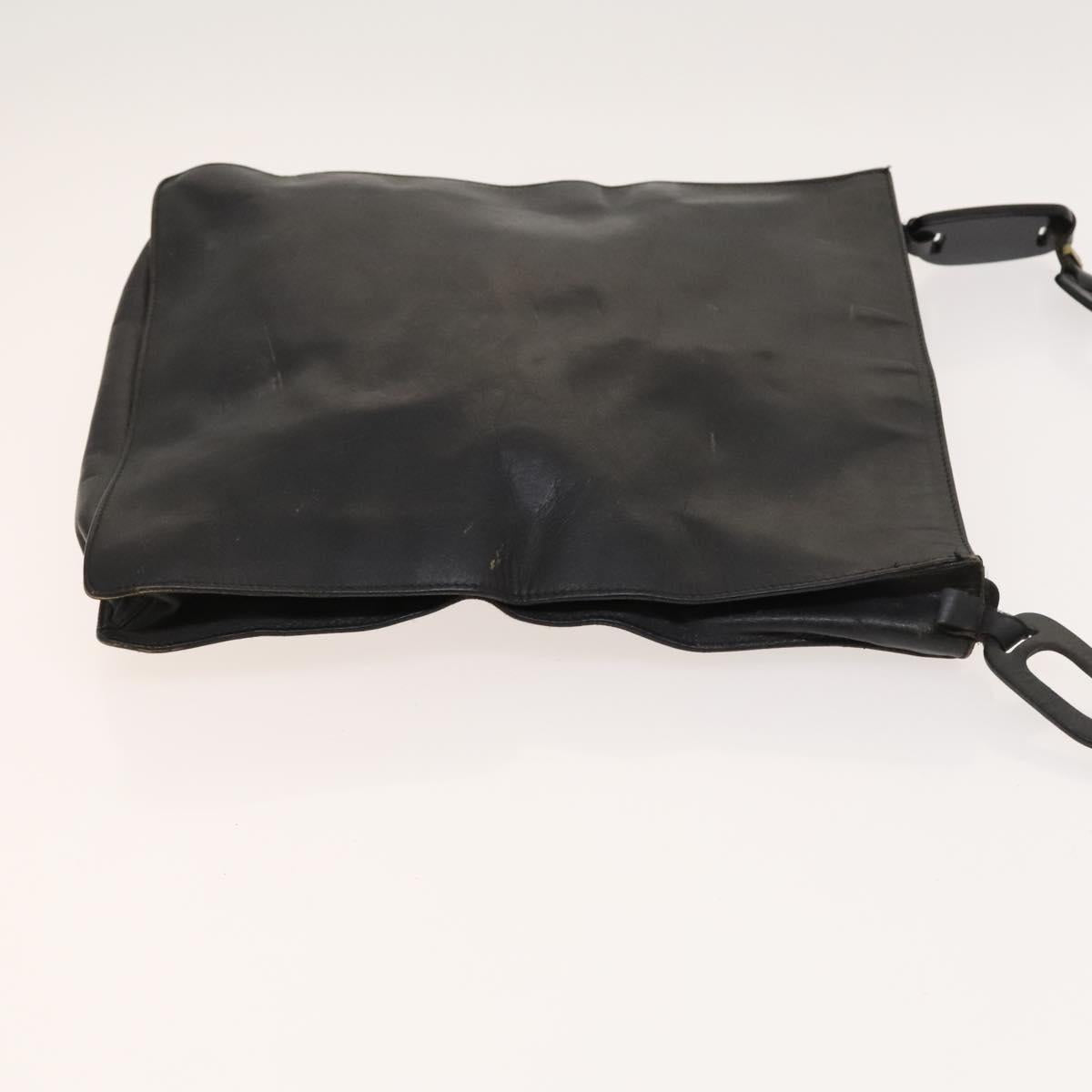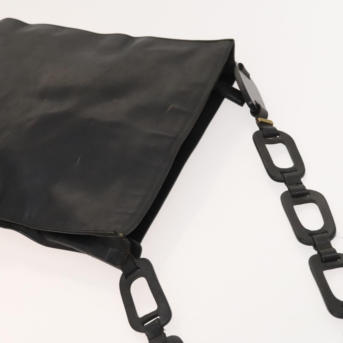 GUCCI Shoulder Bag Leather Black Gold Auth 124984
