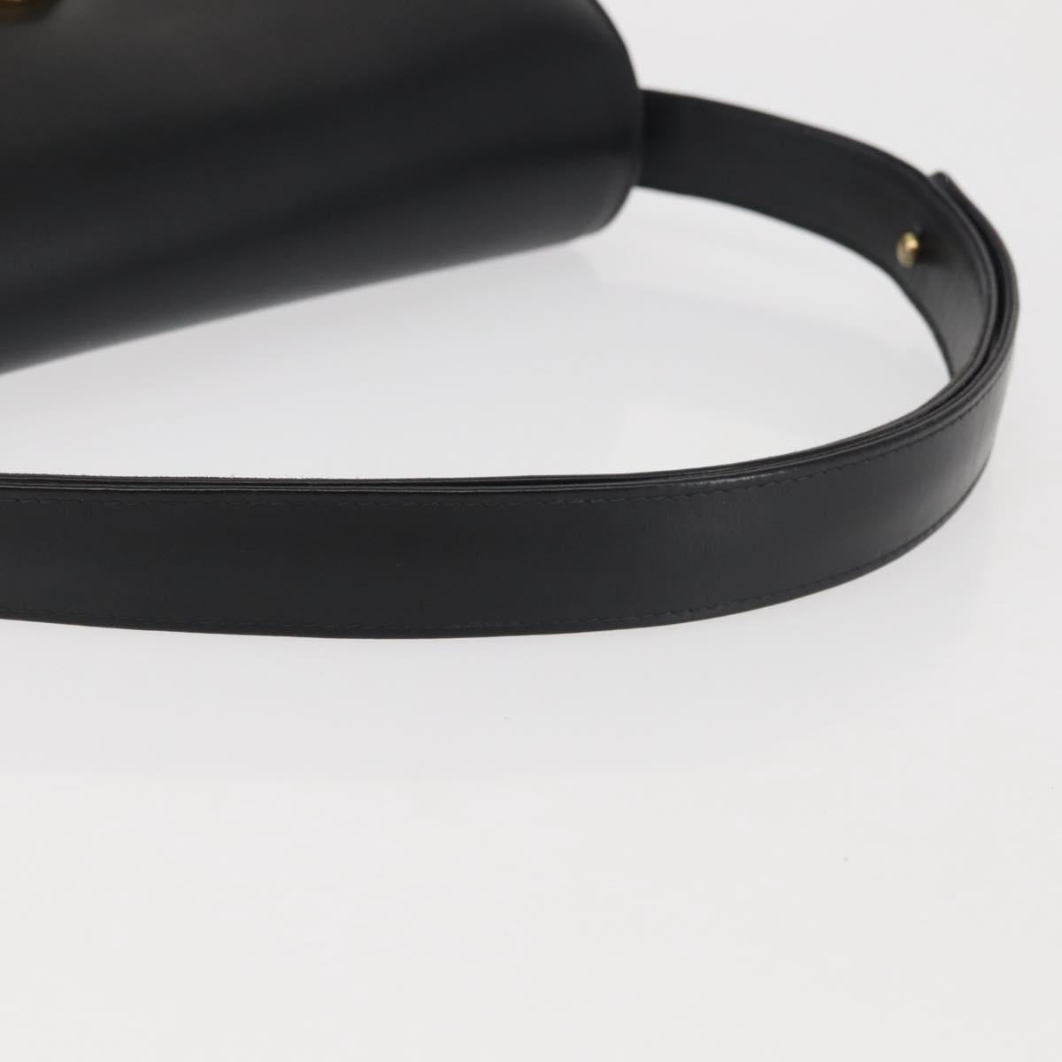 GUCCI Shoulder Bag Leather Black Gold Auth BA5763