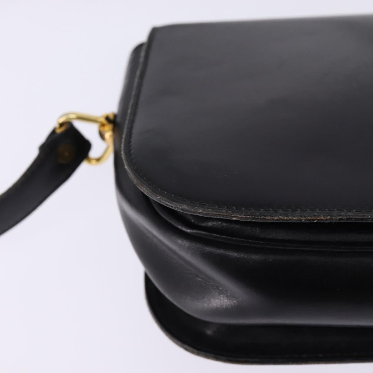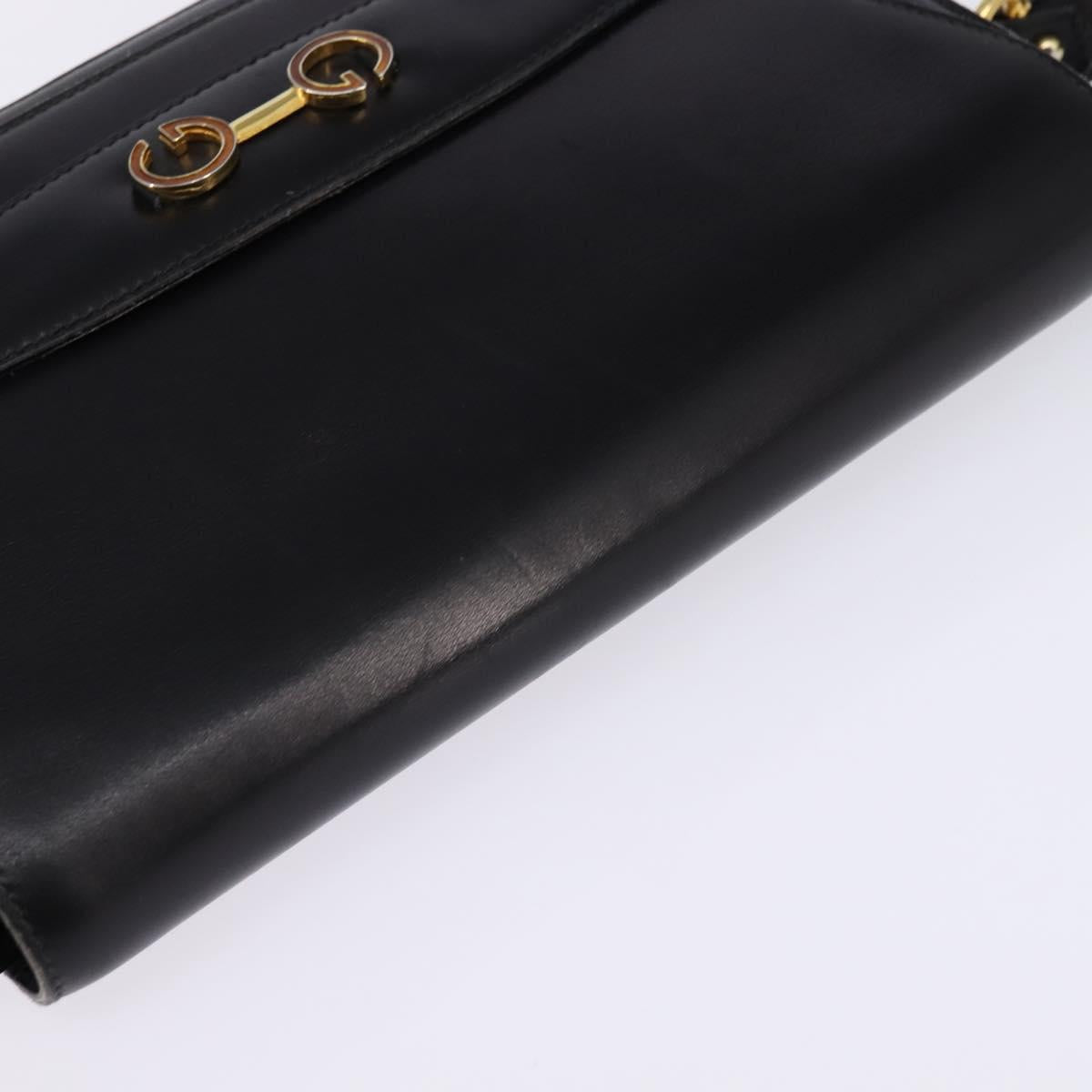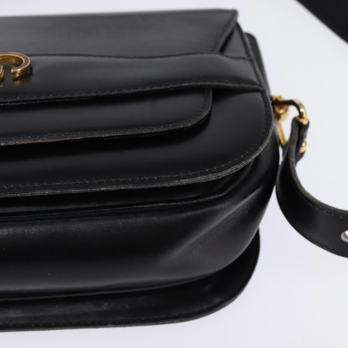 GUCCI Shoulder Bag Leather Black Gold Auth BA5818
