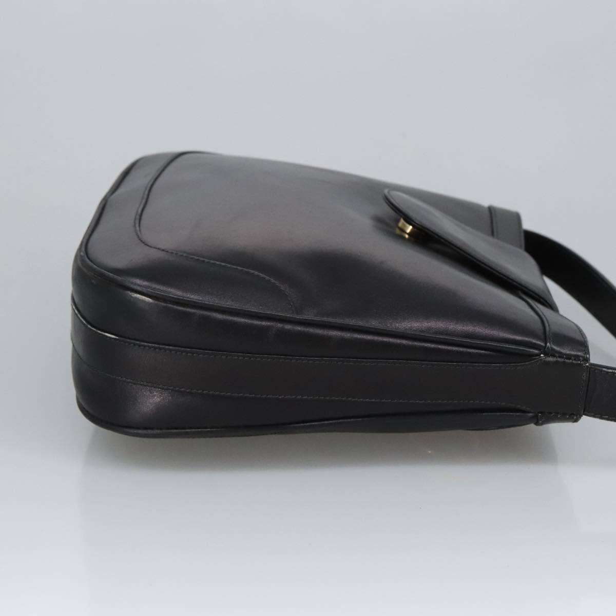 GUCCI Shoulder Bag Leather Black Gold Auth ep6517