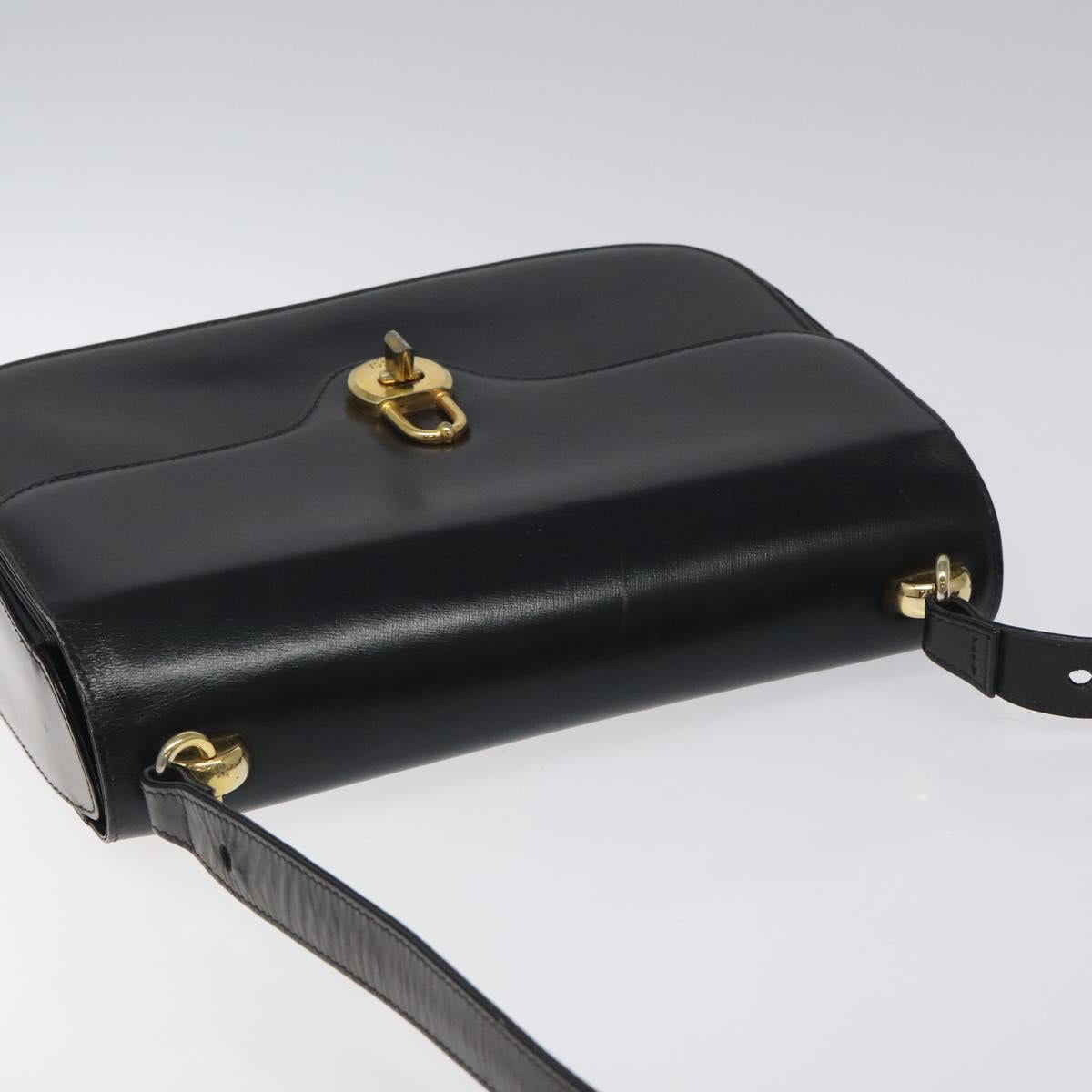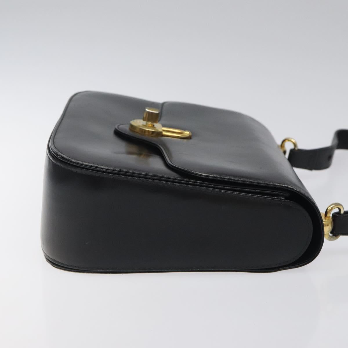 GUCCI Shoulder Bag Leather Black Gold Auth ep8168