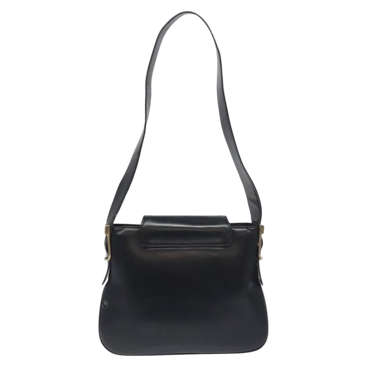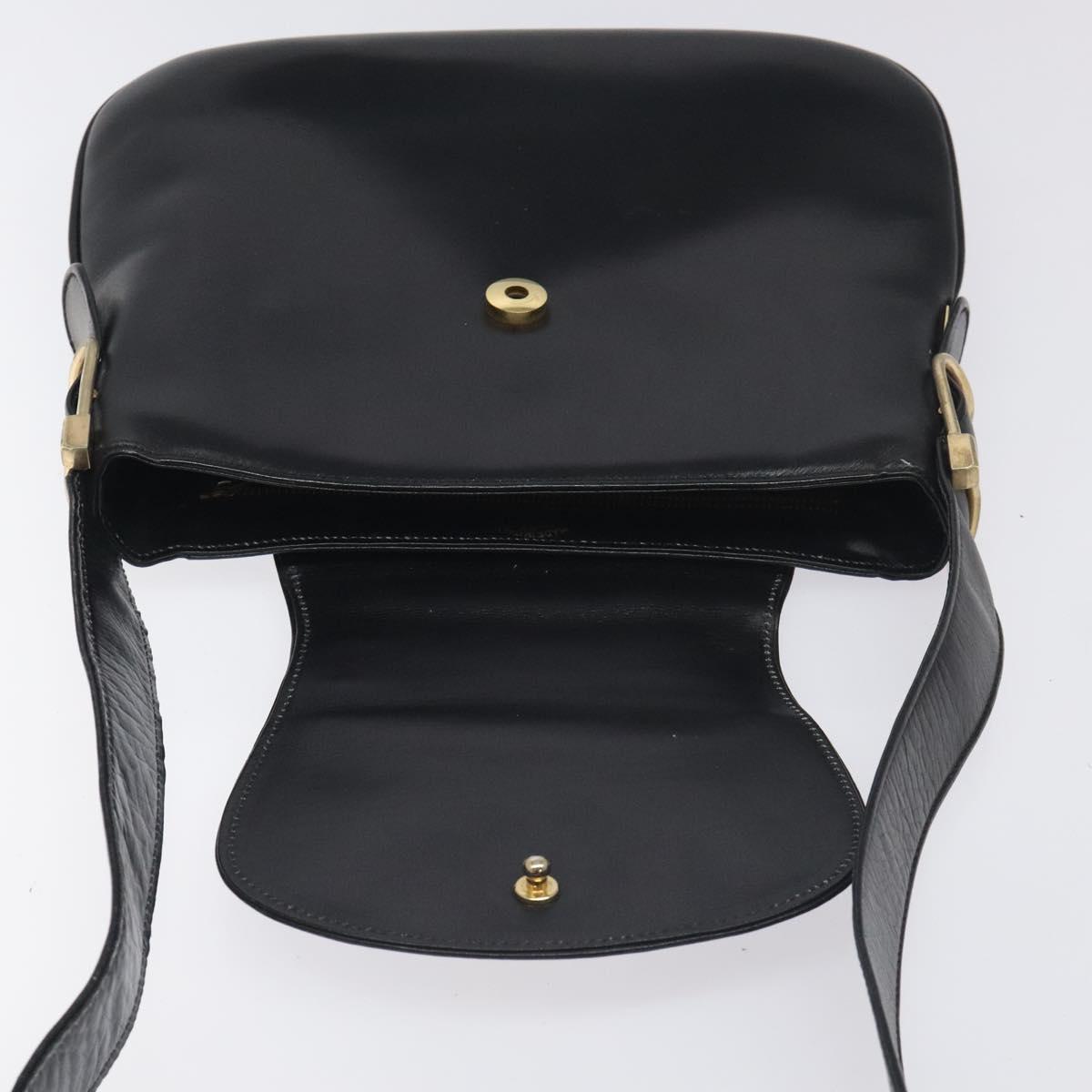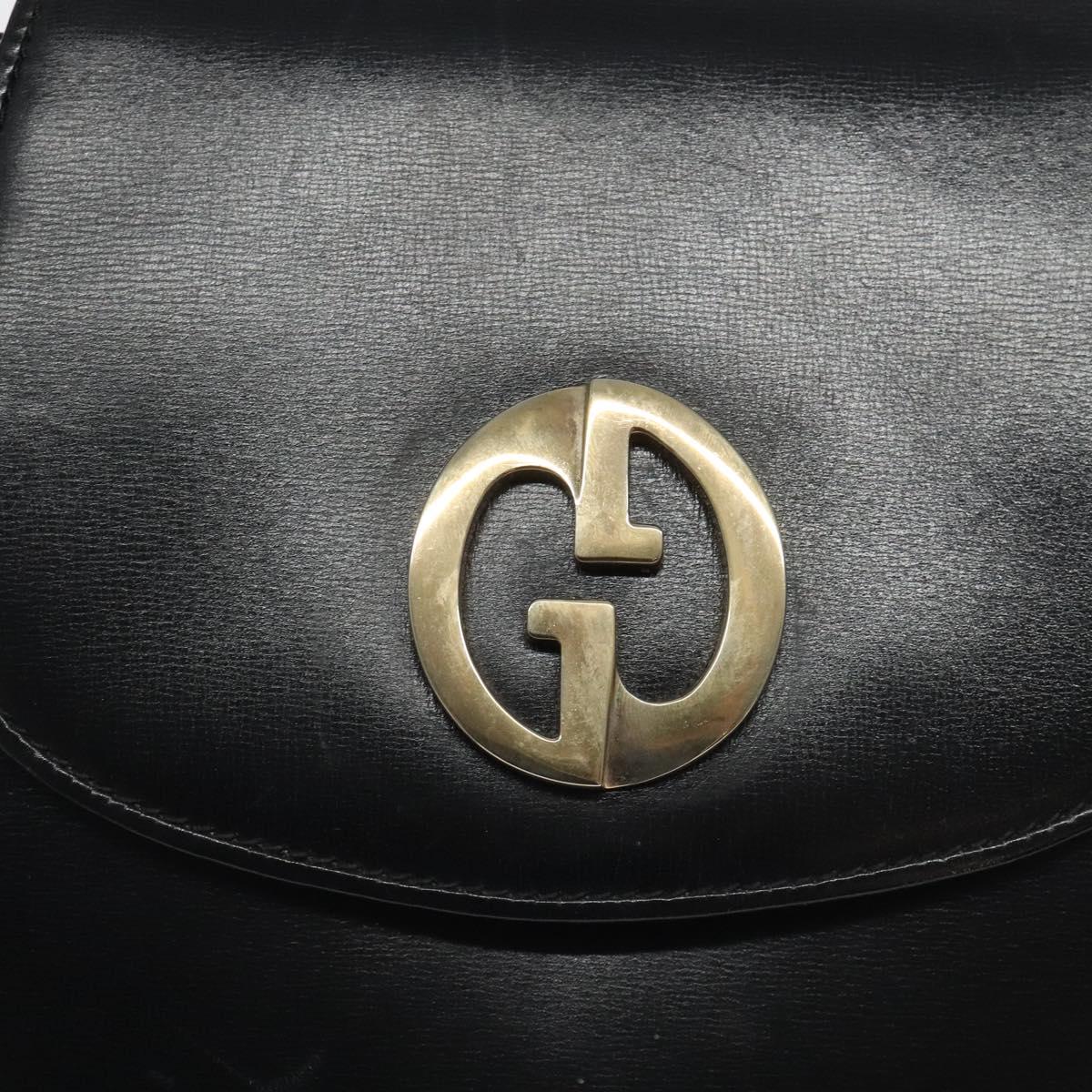 GUCCI Shoulder Bag Leather Black Gold Auth SW972